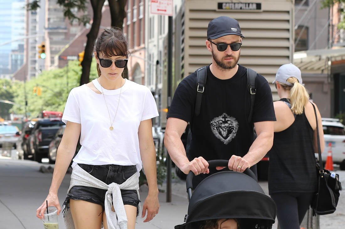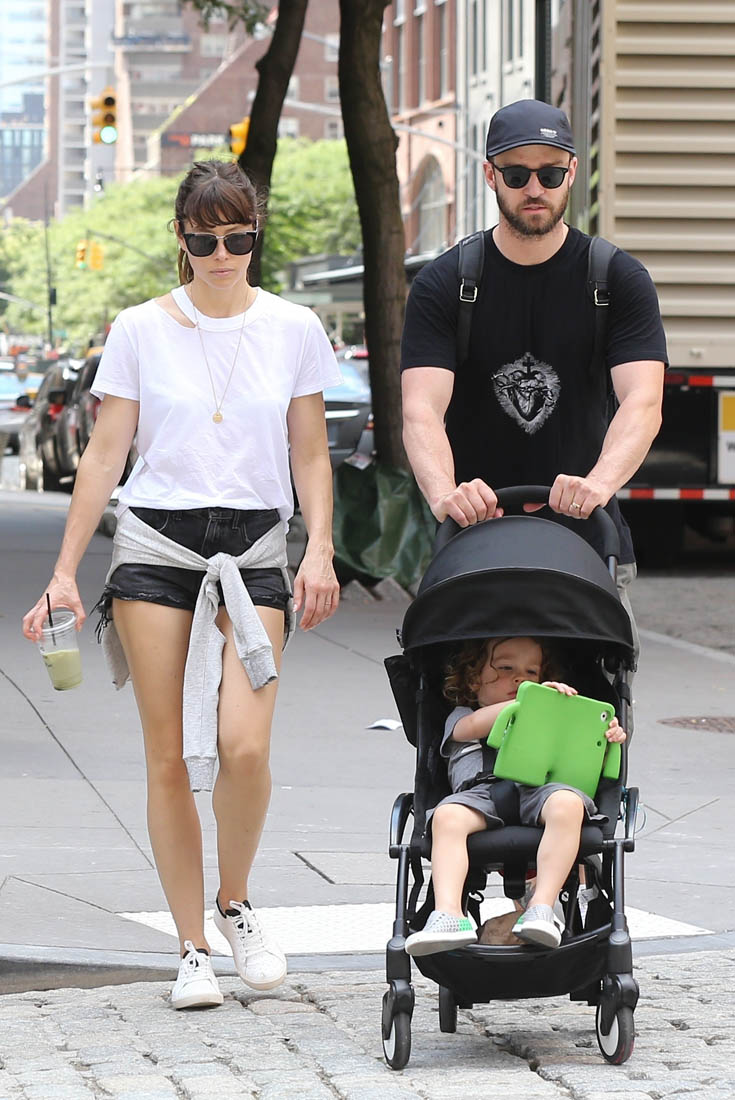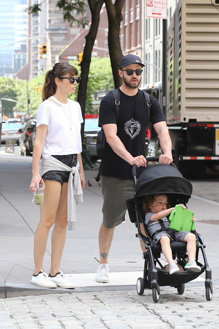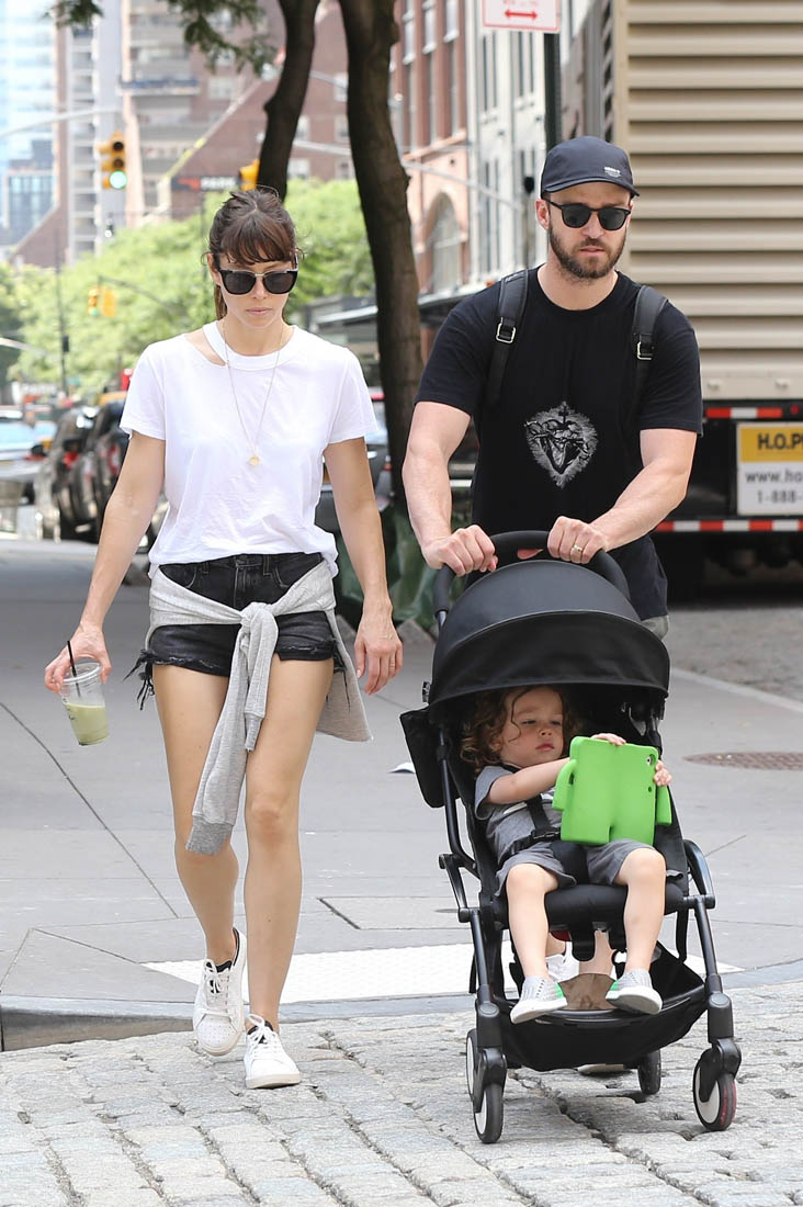 Here is Jay performing in England last week and JT with Jessica Biel and their son in New York.
