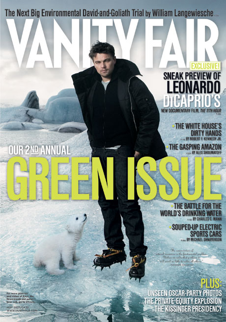 2nd annual Vanity Fair Green Issue – Leo on the cover and he looks hot. But hot as he is, Leo is not the star.