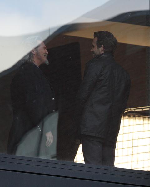 Jeff Bridges and Ryan Reynolds continued to work on RIPD in Boston yesterday, shooting at the convention centre and seeming to enjoy each other’s company during set tweaks and lighting adjustments and whatever the f-ck it is that takes so goddamn long to literally film a 30 second scene. Day to day, movie making is an excruciatingly slow process.