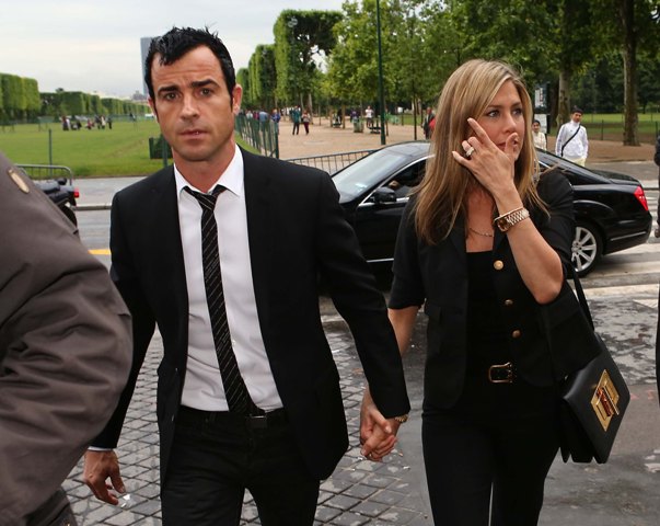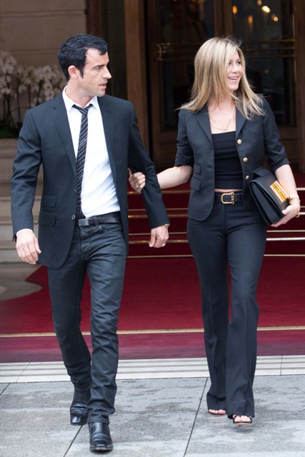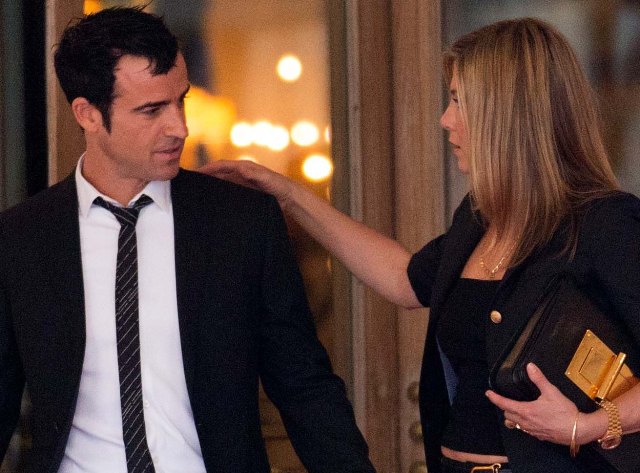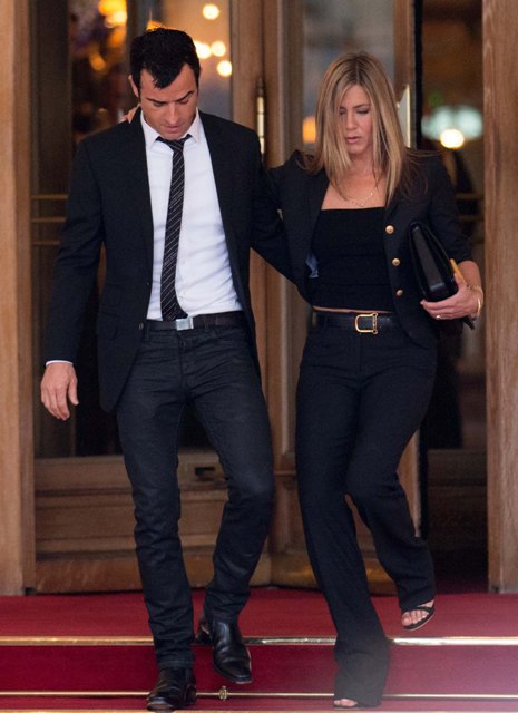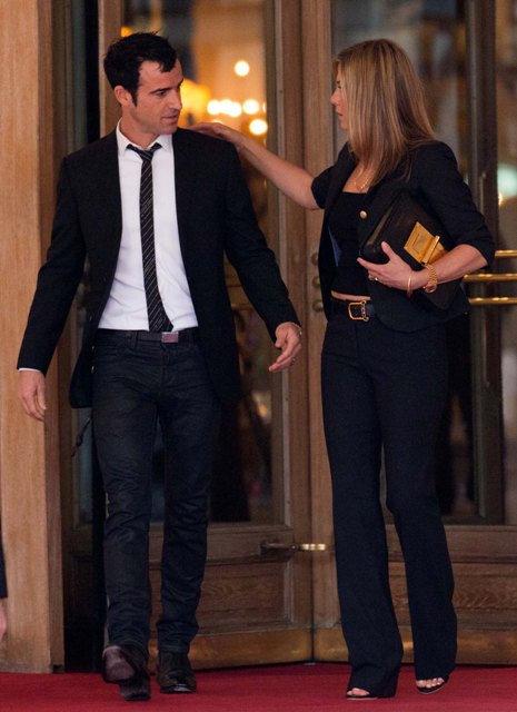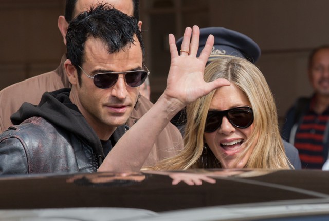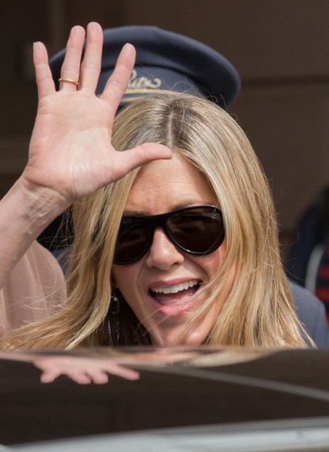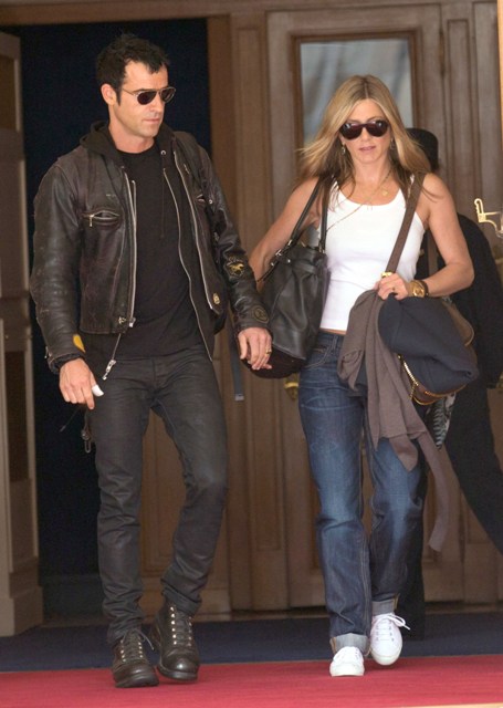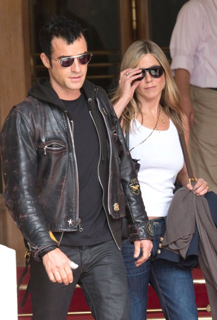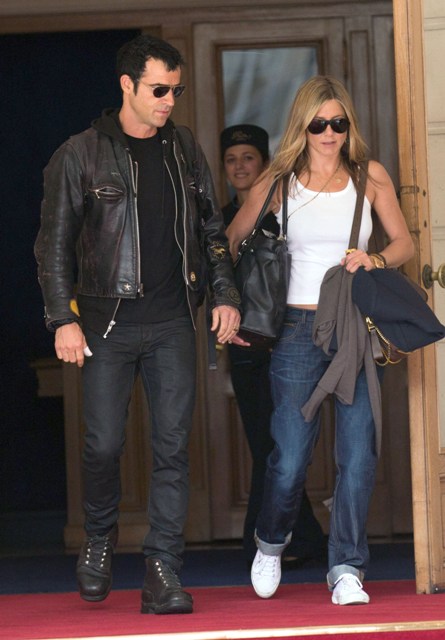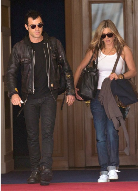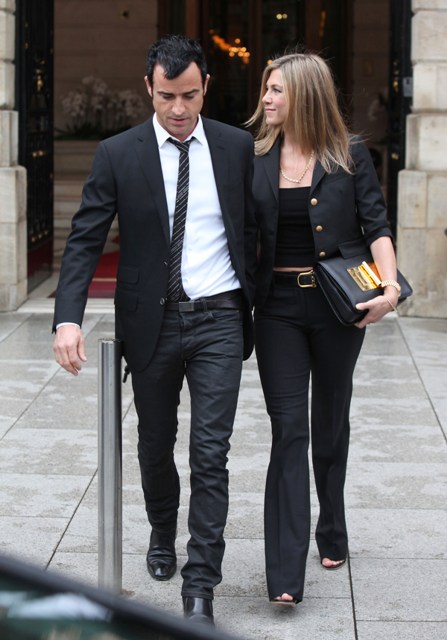 Jennifer Aniston and Justin Theroux left the Ritz in Paris today. Given that she’s double-bagging, I’m assuming they’ve checked out. Look how friendly and smiley she is with the paps, even throwing up a wave. And she has so much reason to be these days. Jen is finally with someone who will play the game with her, happily. John Mayer couldn’t reconcile his love-hate relationship with her fame. Vince Vaughn struggled visibly. Justin on the other hand, Justin seems like he was waiting for it, and for her, the entire time. That, crazily enough, in HIS mind, he deserved a superstar relationship. And I feel like she believes it too. He can write and direct and act, her very own renaissance man…