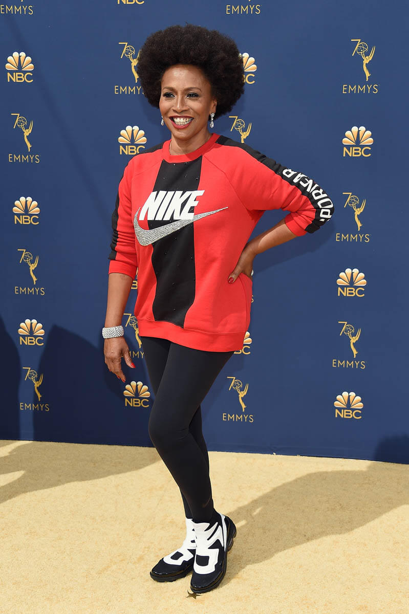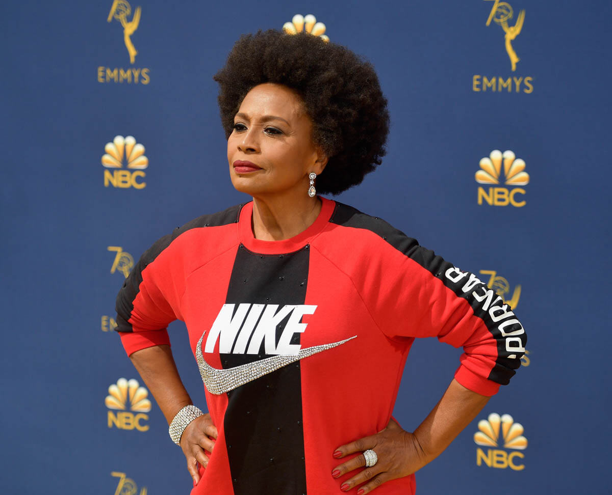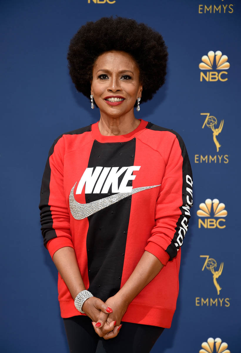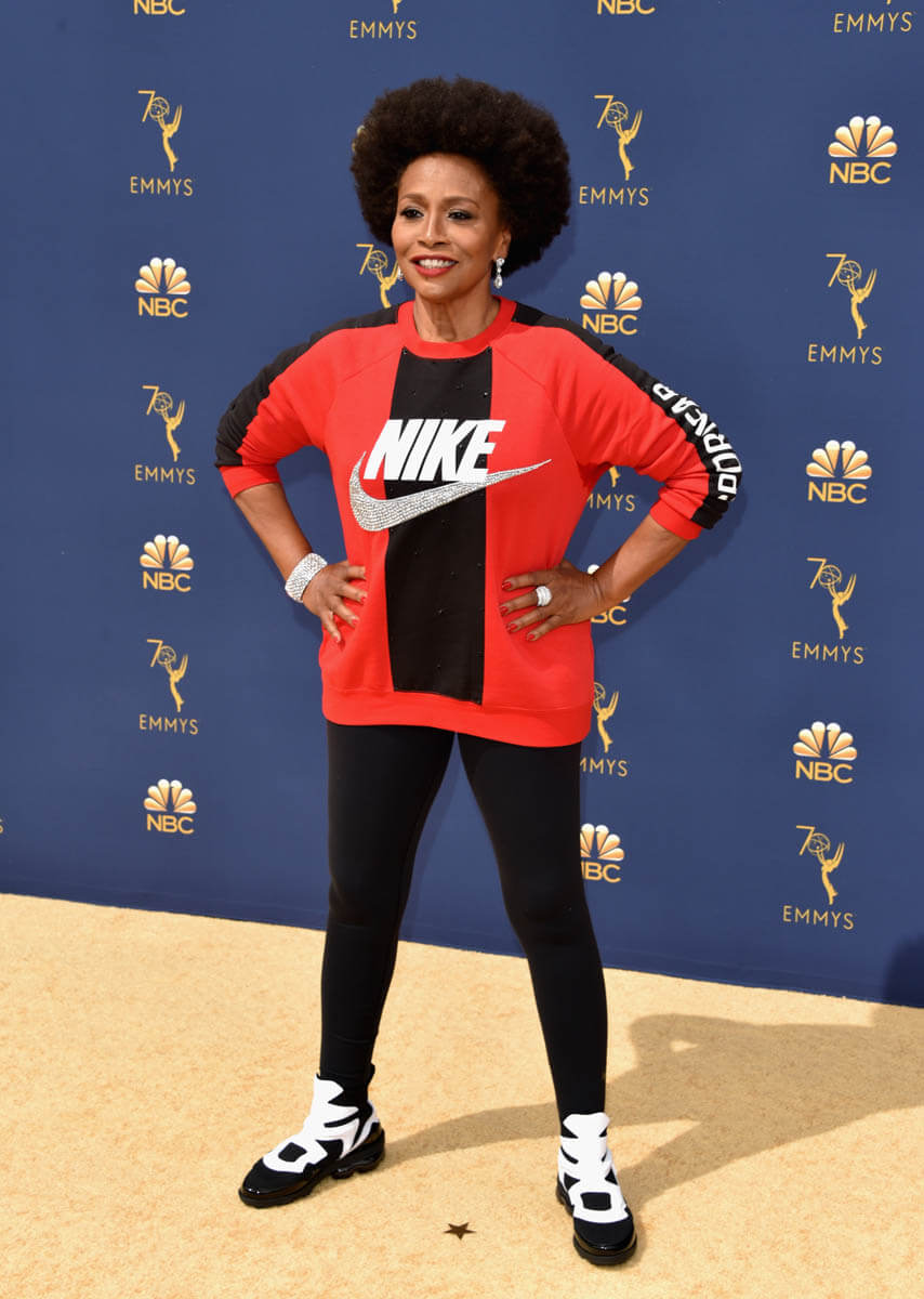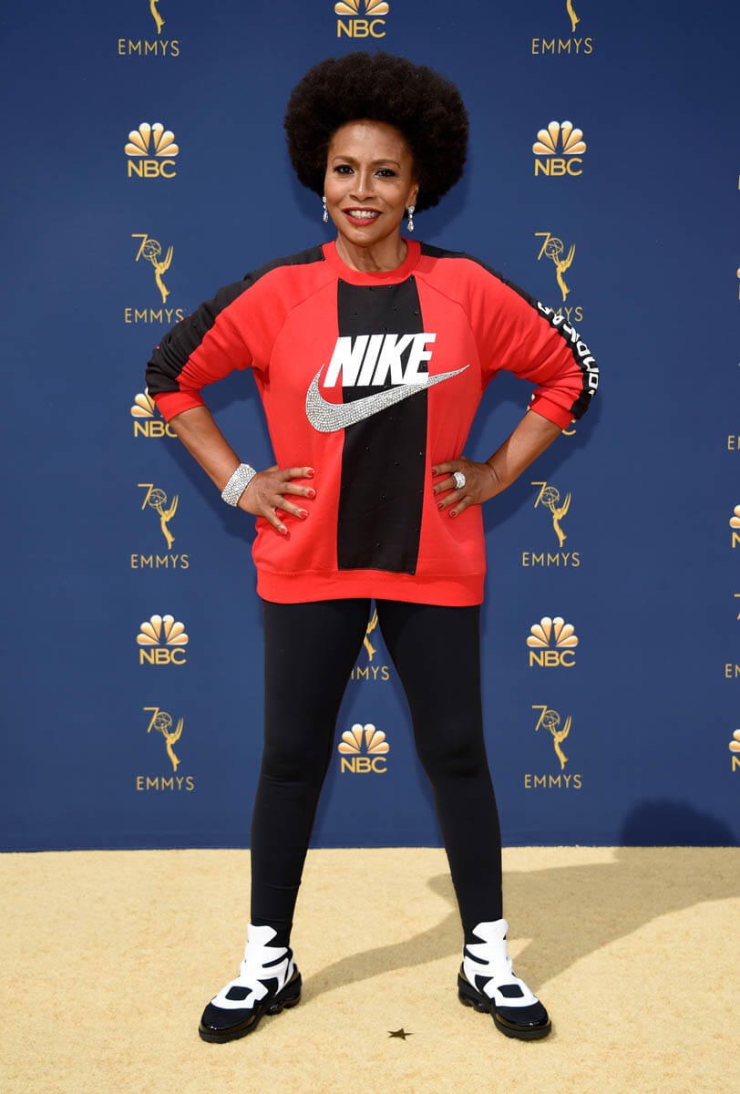 But first, please enjoy this series of poses from Ruby Johnson aka Jenifer Lewis of black-ish. I write a lot about black-ish, how obsessed I am with black-ish. Every time Ruby is on the screen, my life is brighter, my world is better. Jenifer Lewis wore leggings and a sweatshirt and sneakers on the Emmys red carpet in support of Colin Kaepernick. This just a week after Nike released their new ad to soaring sales and a week after Kenya Barris, black-ish creator, who left ABC for Netflix, told The Hollywood Reporter about that episode that was scrapped last season, inspired by Colin Kaepernick and the NFL players who were protesting police brutality.