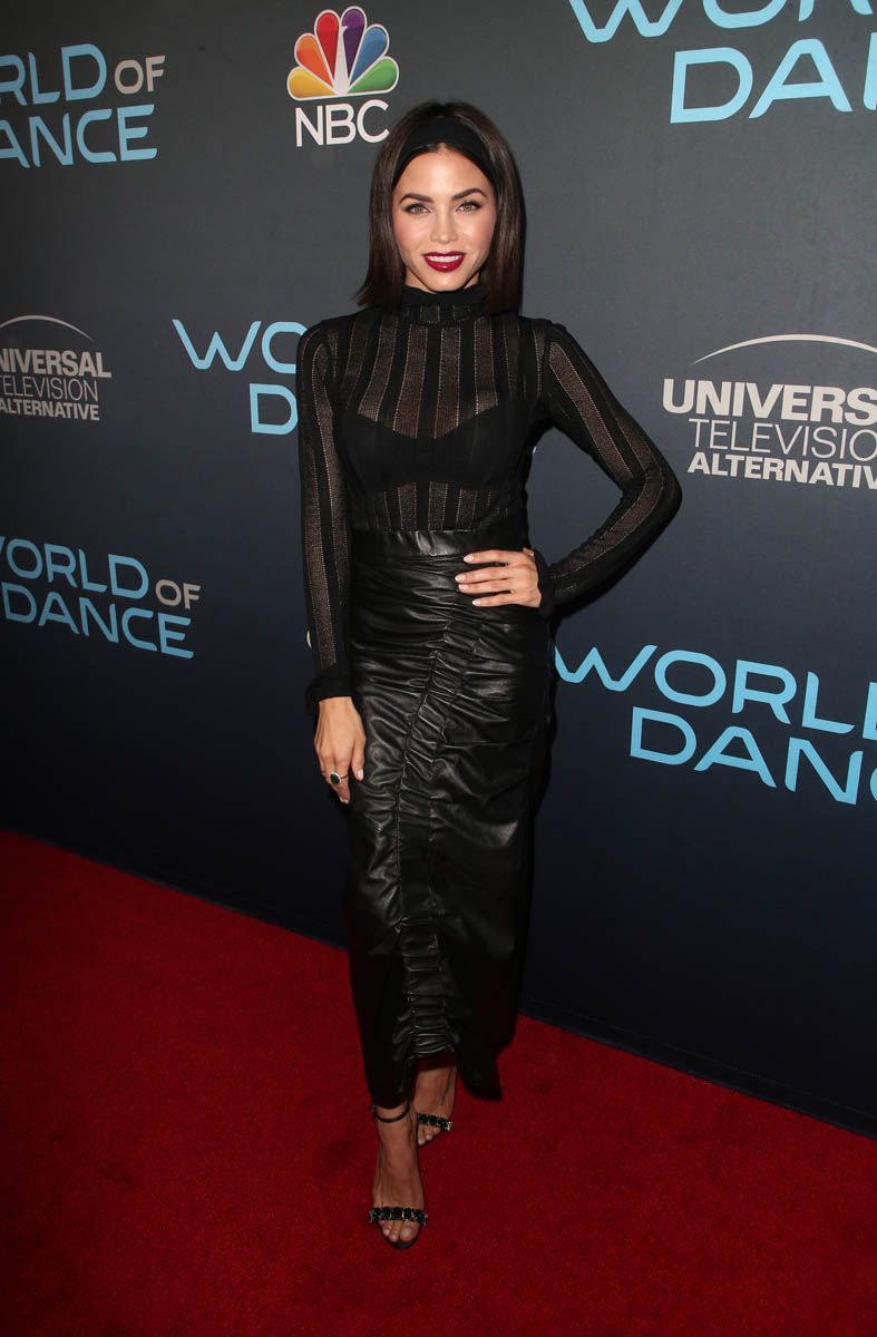 A new season on World Of Dance then is also a new season for Jenna Dewan. With a little bit of a throwback. That headband, can you see it? I almost missed it because I was too busy admiring the ruching in that leather pencil skirt she wore the other day and since her hair is so dark but look closely – the band is placed closer to the forehead than where a headband usually sits. You like it? I think I like it a lot. I think I want to try it.