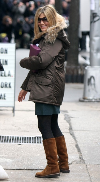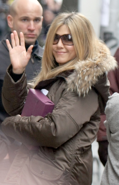 Then Jennifer Aniston arrived in town, the Angie sightings dried up, and so far the last few days it’s been all Jen, only Jen, waving to the MiniVan Majority members lining the block outside her trailer, smiling for photographers, eager to show the world that – surprise! – she’s shooting another romantic comedy.