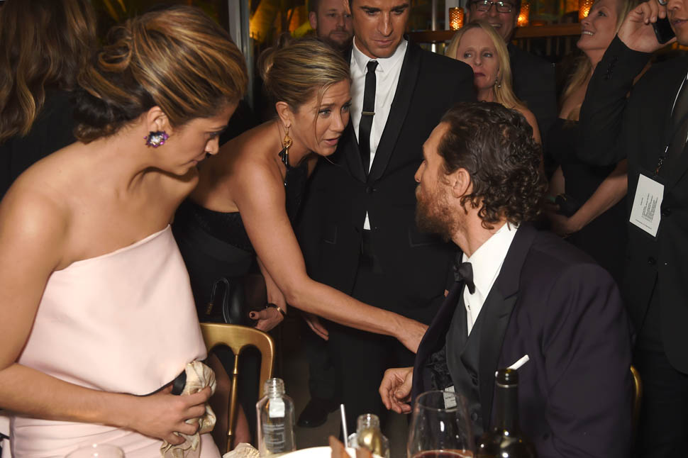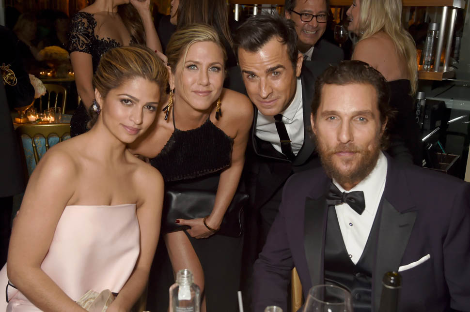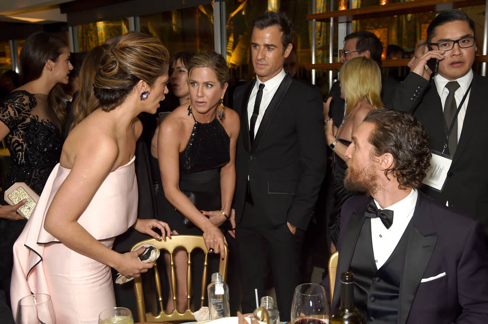 But it’s perfect, isn’t it? The two hardest hustlers this award season, you could say the two most Try nominees on the circuit, were paired together for the first award of the night. As a programming strategy, it's understandable. Opening the show with Jennifer Aniston hooks the MiniVan Majority. Benedict Cumberbatch draws his legion of crazies. It was hours before their categories were announced so they were still in a great mood. I’ve attached a shot that the Globes posted of them on Instagram https://instagram.com/goldenglobes/.