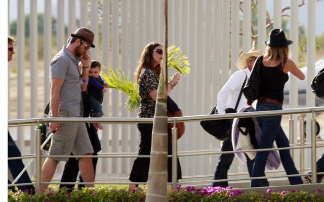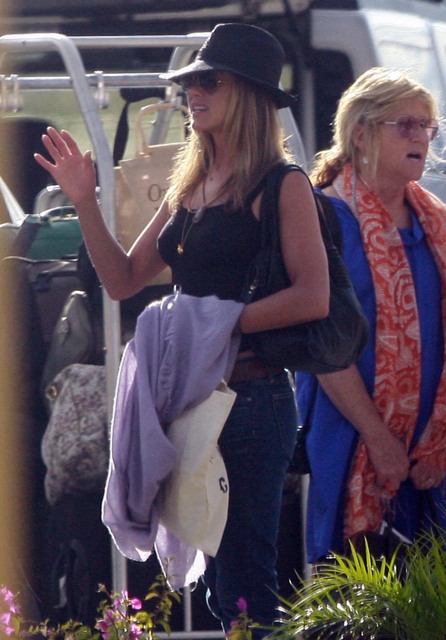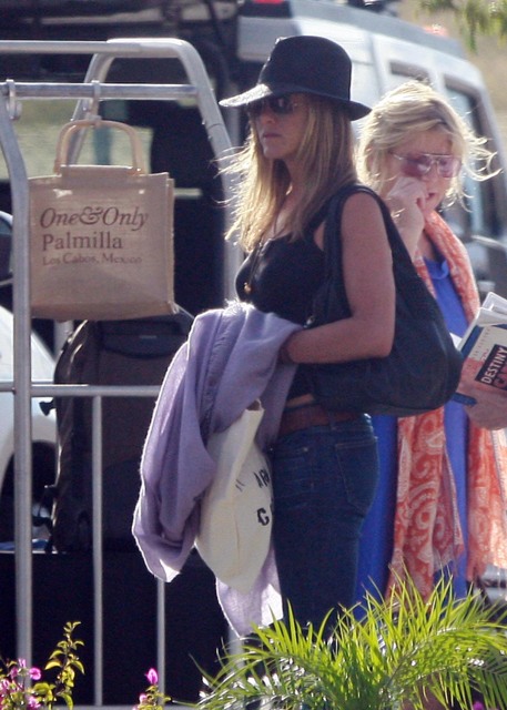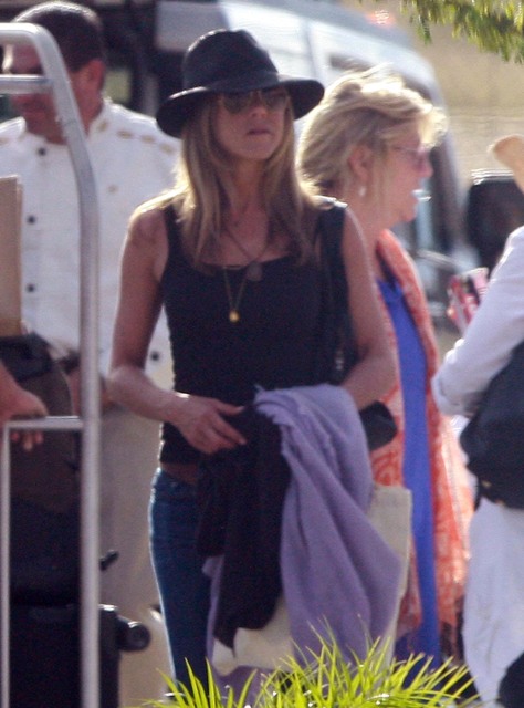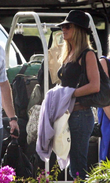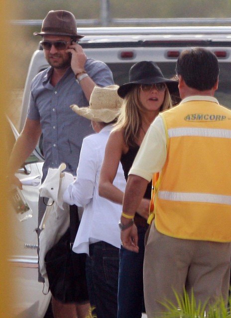 After a few days in Mexico celebrating her birthday, Fabulous at 41! was photographed leaving via private plane with Spittle and friends yesterday. This of course just days after Spittle made out with some random on the street in Venice Beach, much to the embarrassment of Jennifer and her publicist Stephen Huvane. Spittle was likely lightly admonished. And then summoned for the holiday conveniently in time for the tabloid cut off.