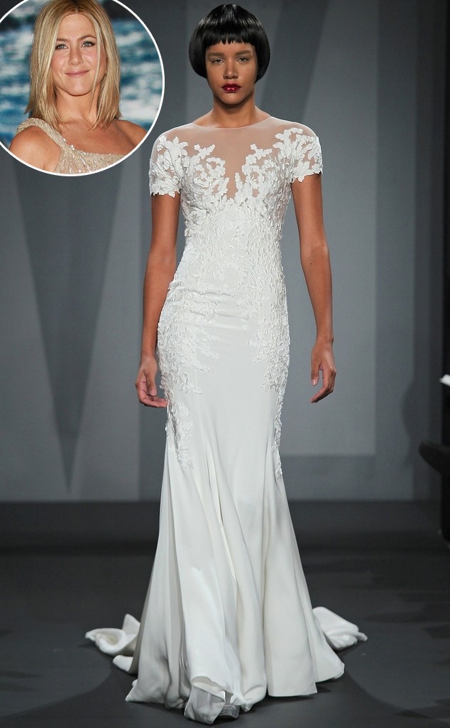 I don’t know how legit this is. The woman’s wording is key here. She picked it for Jen. But did Jen actually WEAR it? And didn’t Howard Stern say it was short? E! has a shot of this alleged dress on the runway: