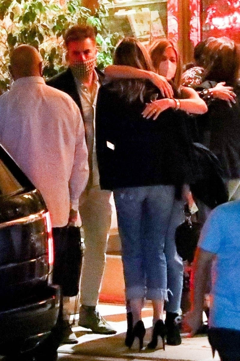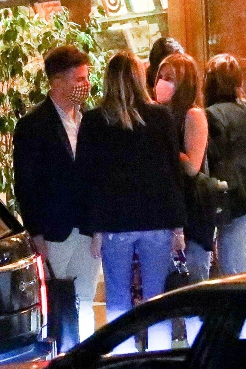 Jennifer Aniston was out for dinner last night with friends, including Molly McNearney and director Will Speck. As you can see, Jen and her crew seem to have a dinner uniform. Same fade jeans, black blazers and tops, and ankle boots.