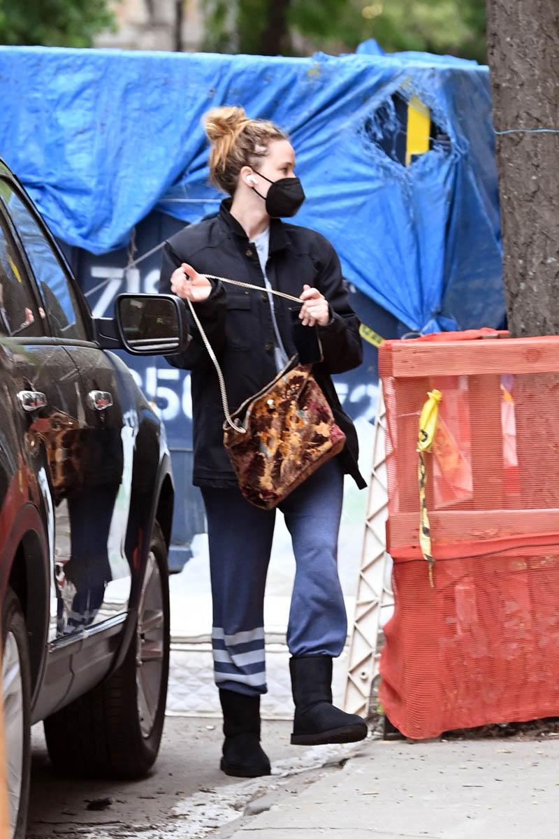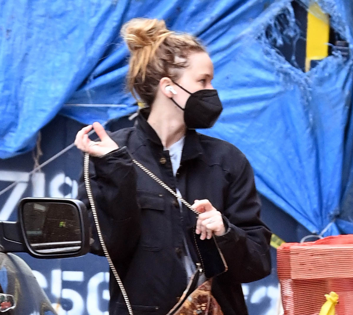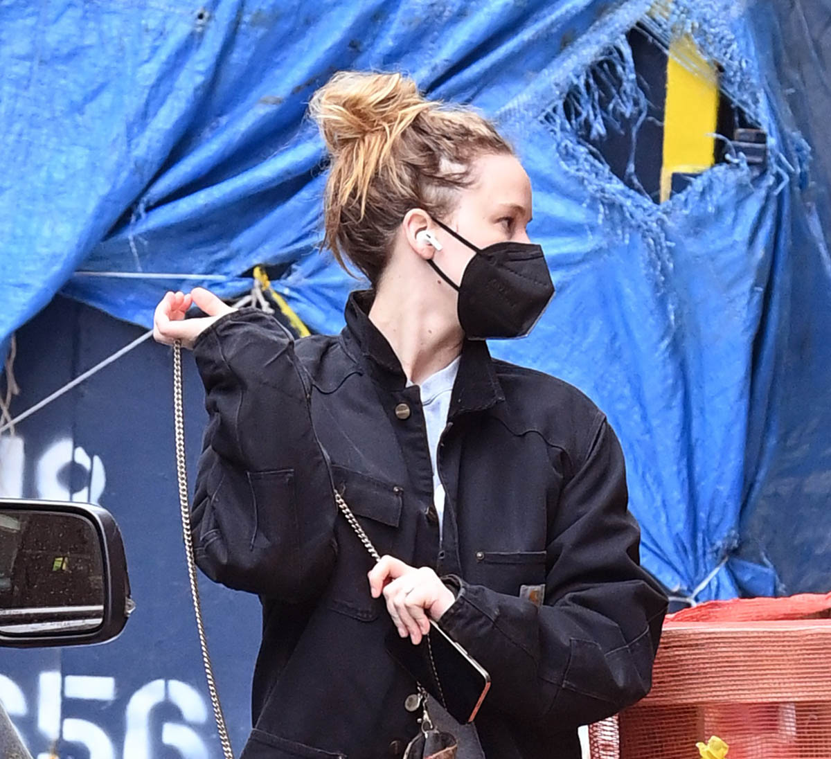 Over in New York, Jennifer Lawrence was also photographed running errands, casually dressed in sweats. That’s an…interesting bag, I’m curious to know what the texture is. She’s carrying it here with what looks like a Carhartt jacket which seems like it wasn’t a choice so much as a, whatever, let me just grab anything moment when she was leaving the house.