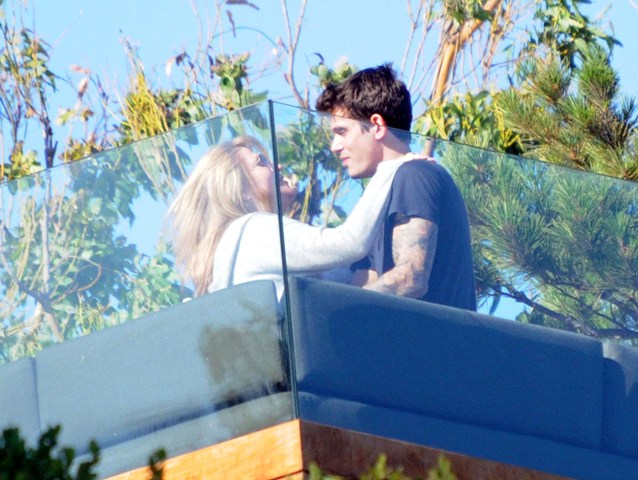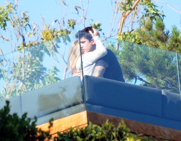 Some say this is them hugging on the terrace. For her sake, I hope not. Because this woman looks OLD. There is only one thing Jen hates more than OLD and having babies. Only Fat is worse than Old and Babies.
