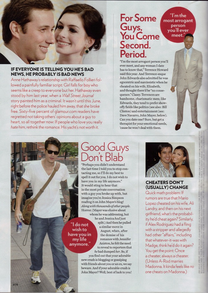 John Mayer is singled out as a dude you do NOT want to date. Ever. See scan attached. So why do these twats keep thinking they can change him?