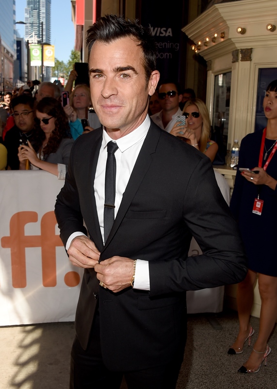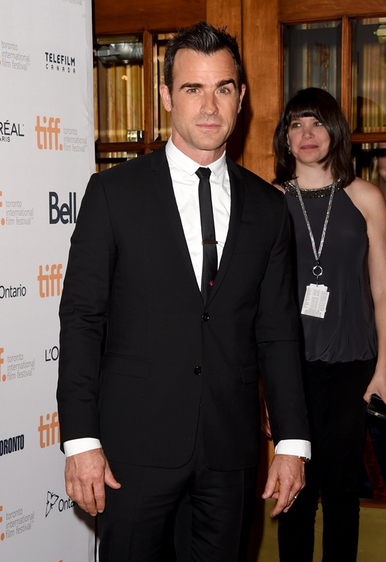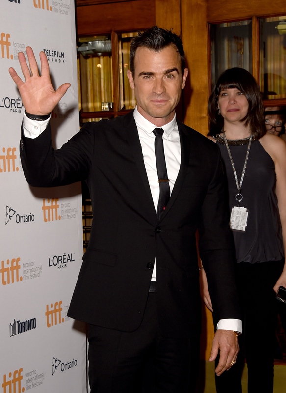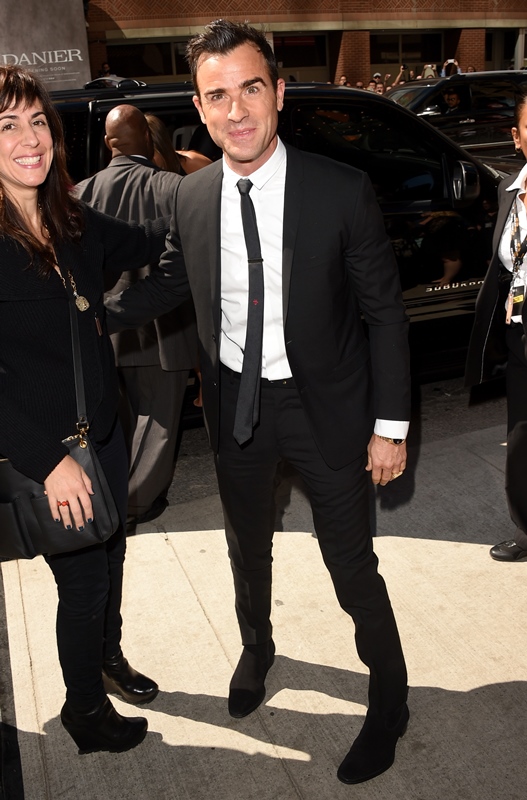 Justin Theroux joined Jennifer Aniston this afternoon for the premiere of her new film Cake at TIFF. He’s actually been here a couple of days. Was photographed at the Warner Bros party on Saturday night without her. Today they did not walk the carpet together but agreed to a shot inside.
