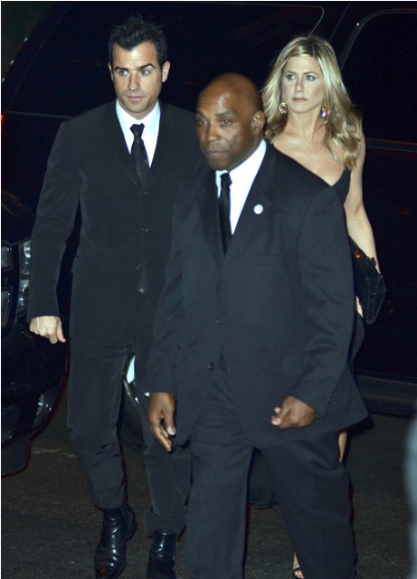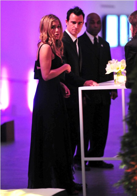 Anyway, Jen wore black, and looked great with her side part and Chelsea should have considered a different jumpsuit, and yes, of course Justin Theroux was nearby, because they are never apart, he and Jen and the trailer for their movie Wanderlust was just released last week, have you seen it? This is where they fell in love. But Paul Rudd’s the one who makes it actually kinda bearable.