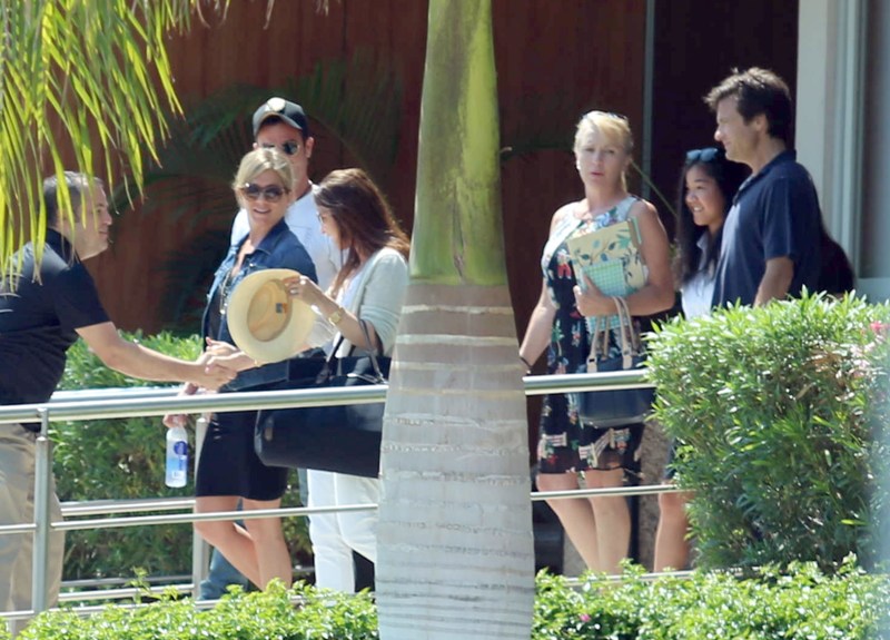 Check out Jennifer and Justin Theroux arriving in Mexico yesterday with Jason Bateman and his wife Amanda Anka for a double date holiday. We will next see Jen in theatres at TIFF – Life Of Crime, adapted from Elmore Leonard’s novel The Swith, will close the festival. It was announced this morning that Leonard passed away today at the age of 87. The word that most people use to describe movies sourced from Leonard’s material is “cool”. Out Of Sight was cool. Raylan Givens is cool. Get Shorty was cool. Will Life Of Crime be cool too?