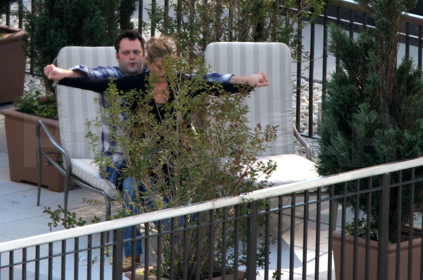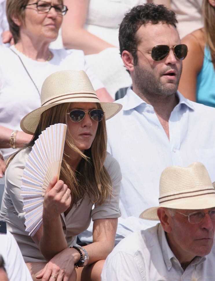Earlier this week, after attending the premiere of She’s Funny That Way, Jennifer Aniston was at the Sunset Tower for dinner. And so was Vince Vaughn, apparently having dinner with Jake Gyllenhaal. According to US Weekly, the two were happy to see each other, almost 10 years after they split.