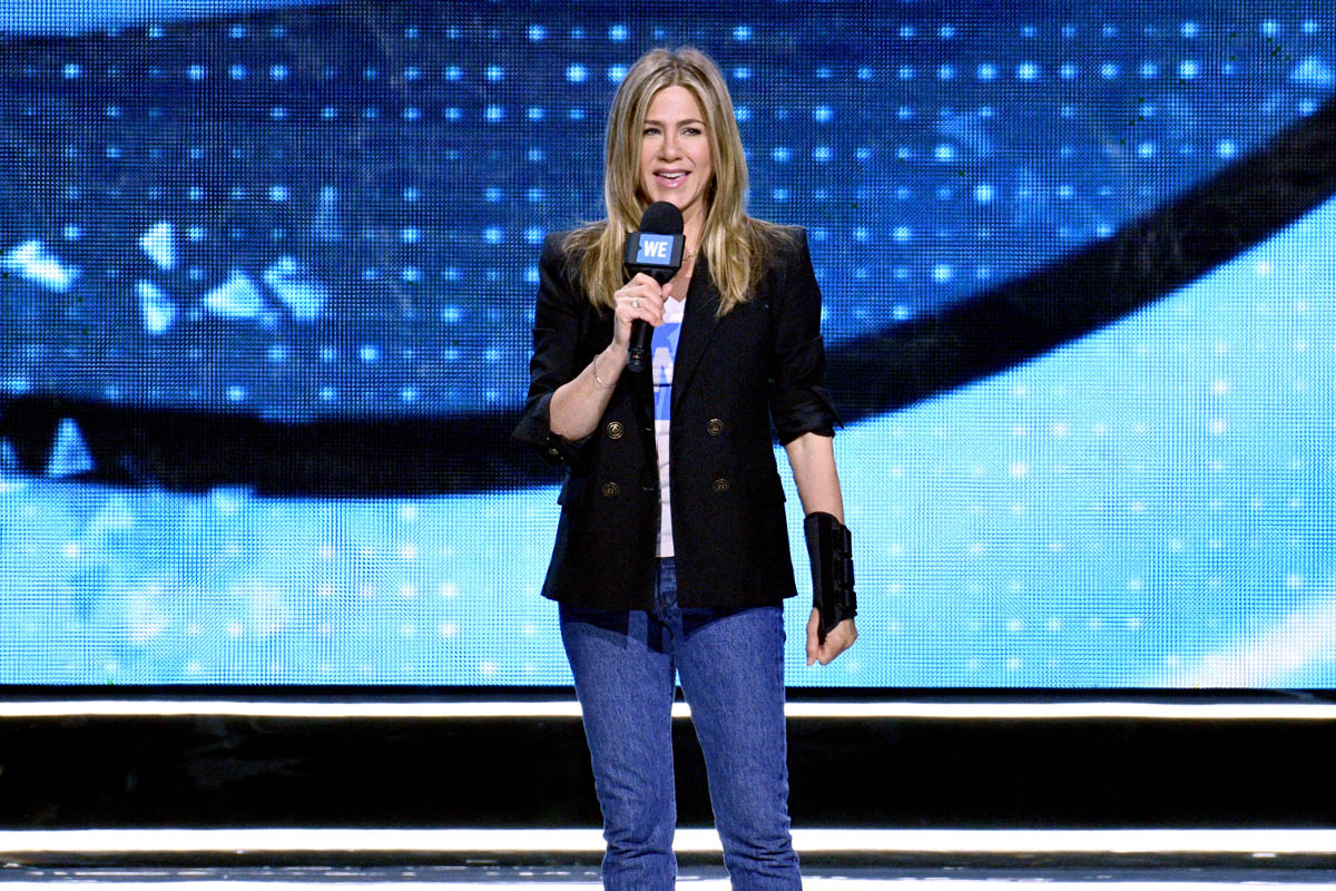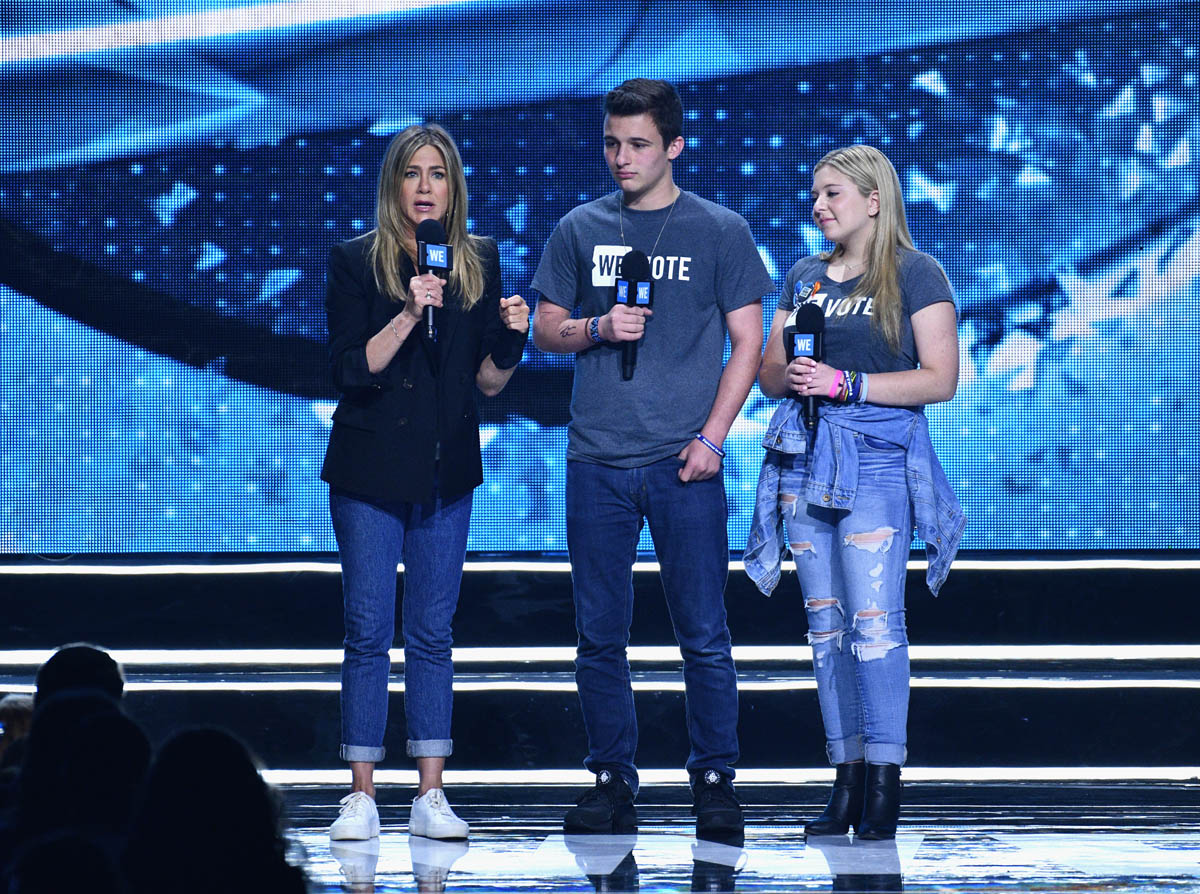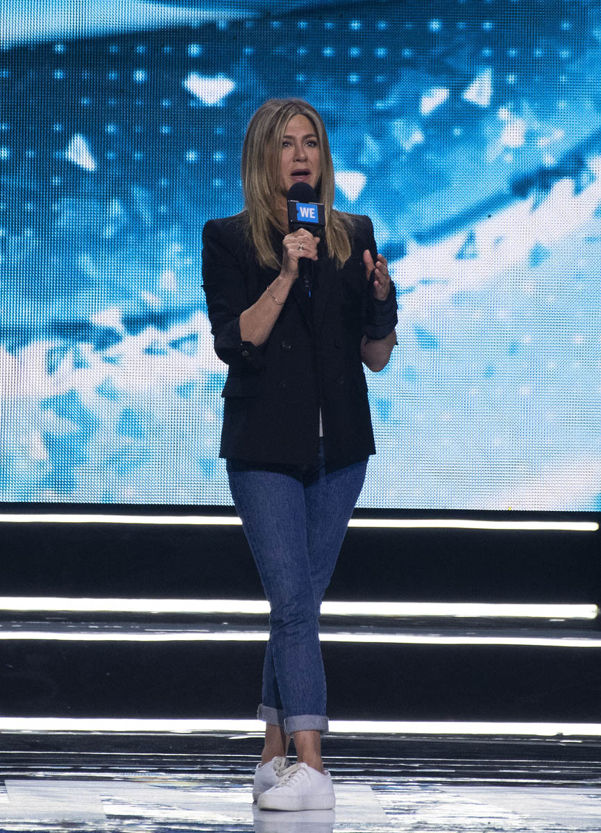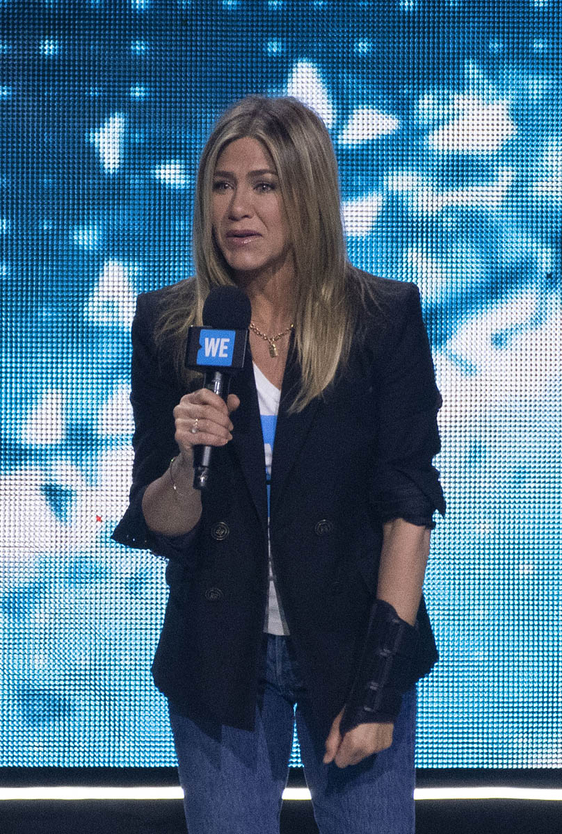 While Justin Theroux spent the week in super cool New York with his “arty” and “edgy” friends, walking around the city in his Eazy-E tee and showing off his NYC (spray) tan, Jennifer Aniston was at WE Day California yesterday, supporting youth activism. Selena Gomez has been a WE Day regular for years. Selena and Jen are friends. This is the likely connection. Which is why it was bullsh-t from Radar last week when they reported that Jen was pissed at Selena because Justin was moving in on her. Remember, Radar, the National Enquirer, Star Magazine, and US Weekly are now all under the same umbrella.