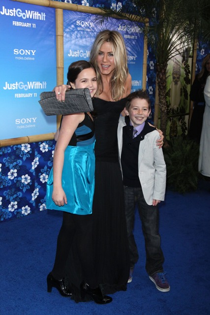 As noted earlier, Jennifer Aniston and Justin Bieber have movies opening this weekend. Both attended their premieres last night too. Bieber was in LA on the carpet for Never Say Never. The Will Smith Family showed up too. And Miley Cyrus. And Selena Gomez.
