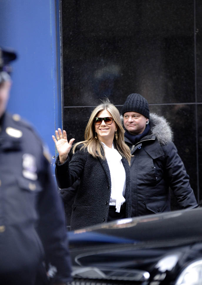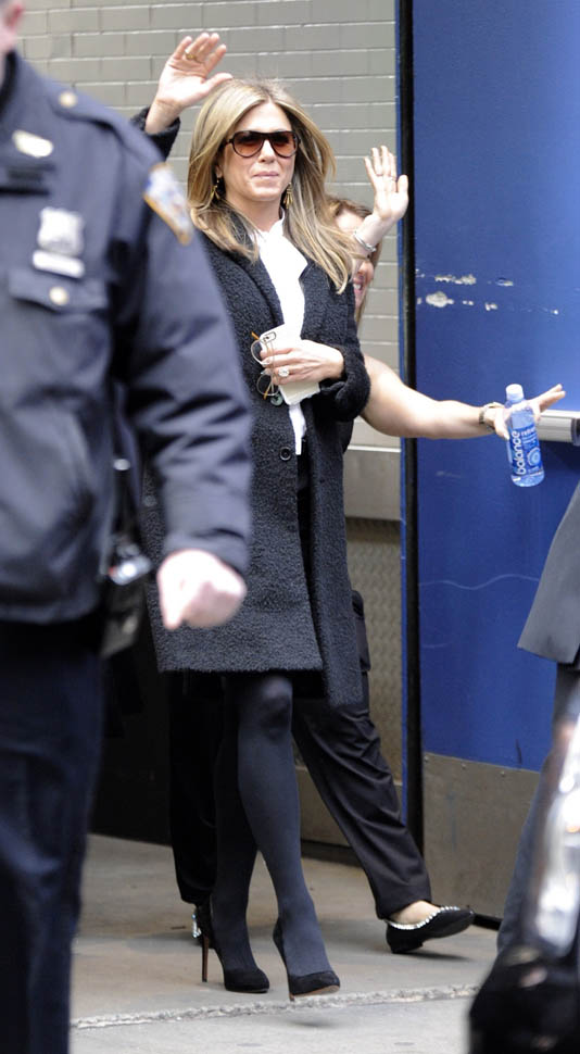 Jennifer Aniston continues to promote Cake in New York today on the morning show circuit. Here she is on the cover of the new issue of The Hollywood Reporter in just a very comfortable, warm-coloured sweater showing off a pair of tanned, toned legs.