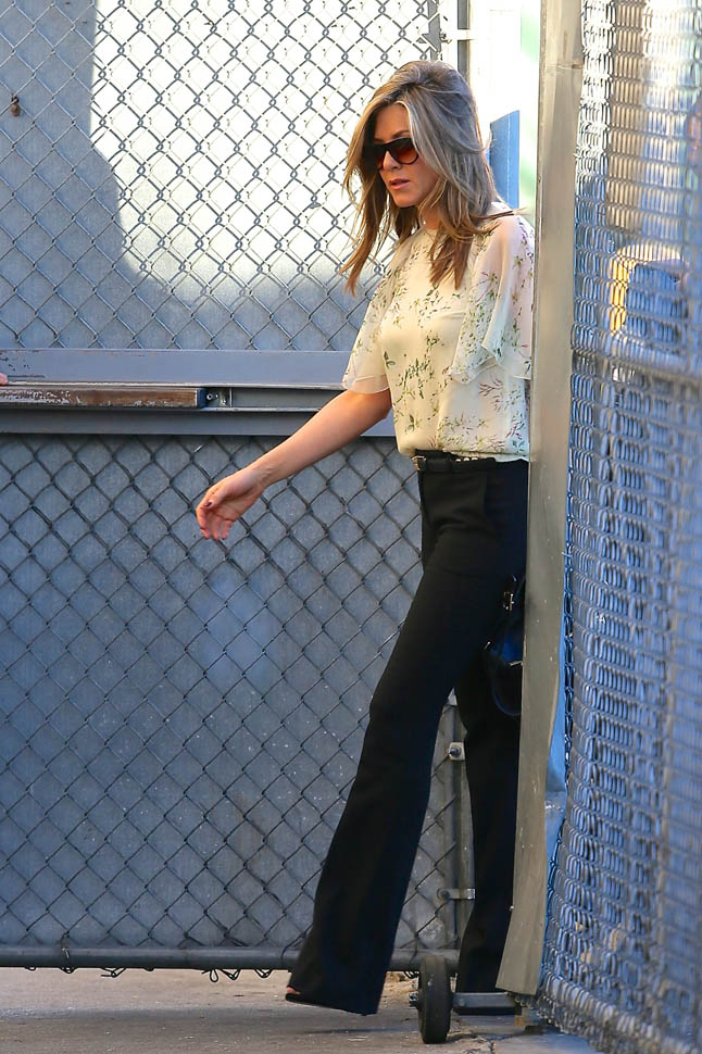 Last night Jen hung out with her friend Jimmy Kimmel. There was an interview first followed by the Celebrity Curse-off. Let’s start with the interview. They spend a lot of time talking about her fear of flying. I mean, it wasn’t a Katie Holmes level of boredom but close, real close.