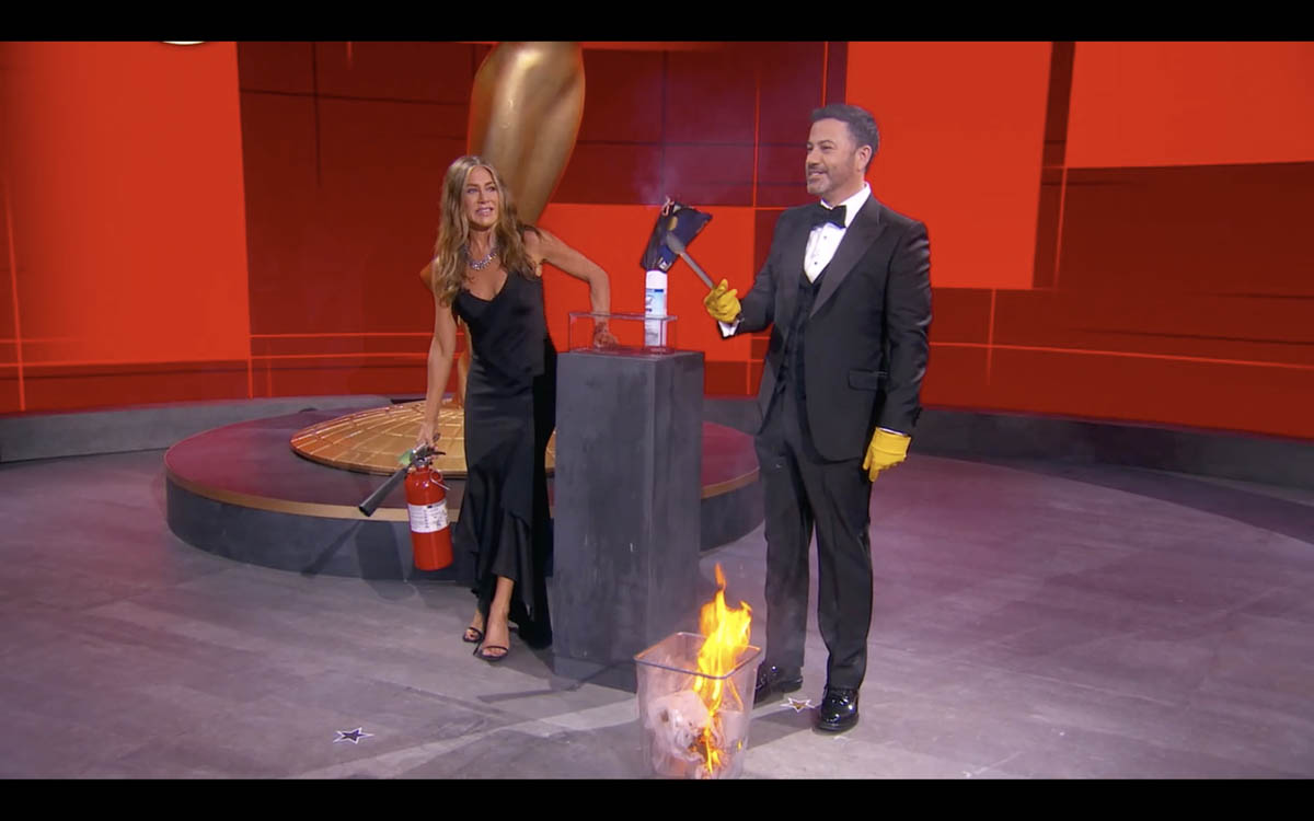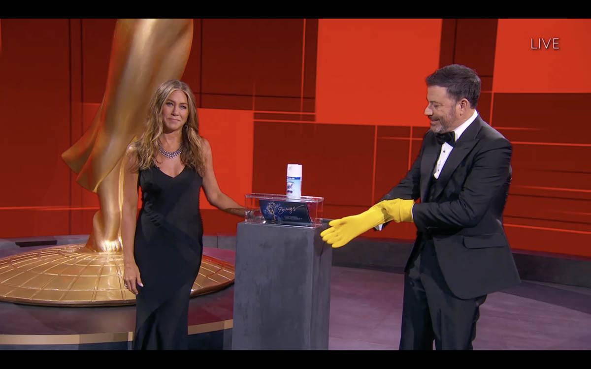Fine. So she’s predictable – but that cuts both ways. I think it was incredibly smart of the Emmys to have Jennifer Aniston in studio with Kimmel early on, because one excellent skill she has is her unflappability. She’s never once seemed flustered in a live situation, which is a lot harder than it looks, even if she’s been doing it so often it would seem to elicit roughly the same amount of nerves as a family birthday party.
