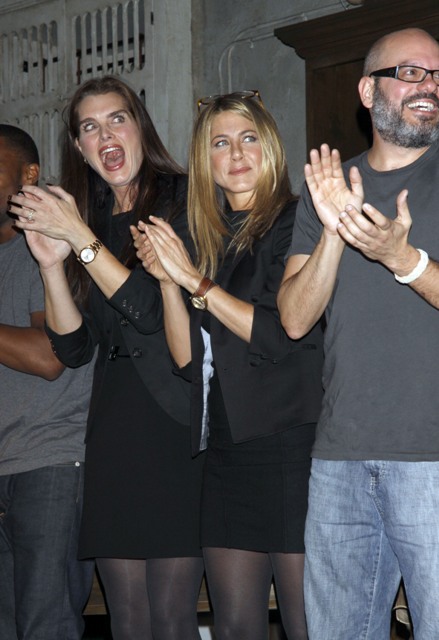 She looks great, non? Fresh highlights, tight body, serene smile...not a hint of John Mayer f-ckery. She hasn't been able to cut that sh-t out. Apparently they're seeing each other undercover although Jen is likely still keeping her options open. Her publicist Stephen Huvane is probably keeping them open for her. And if Bradley Cooper wants another go, she'll be all over it before the first drop hits the floor.