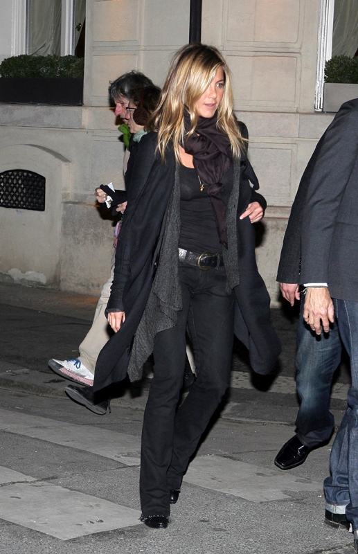 So anyway, Jen in Paris looking long and lean in black jeans, joining – at some point – Owen Wilson who’s already been there for a few days with Kate Hudson.