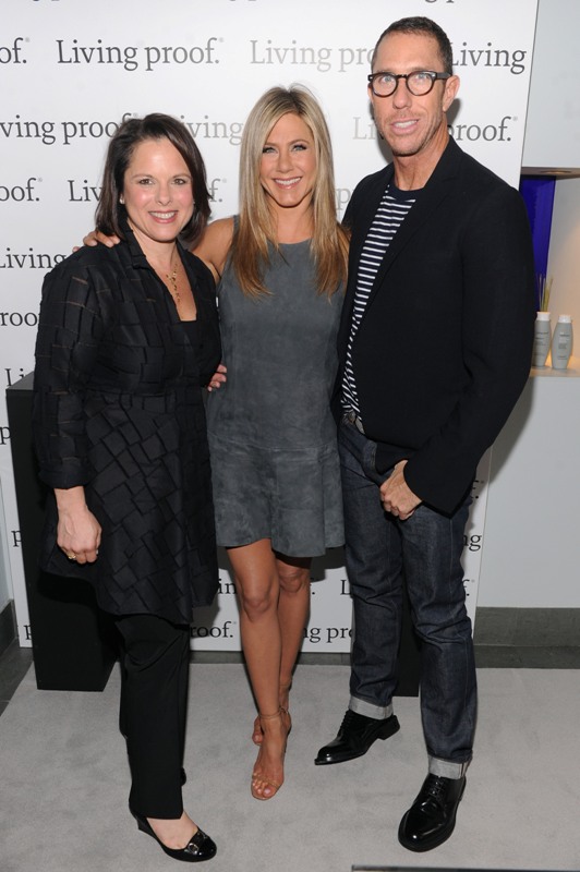 Jennifer Aniston was in New York yesterday to promote her Living Proof hair care line. Can we just sidebar about how annoying this is, how brands are so inconsistent with the capitalisation of the letters in their names? The “p” in Proof is not capitalised in the step-and-repeat behind her. If you go to the company’s website, the “p” is also not capitalised in the heading, and “Living proof” is followed by a period so that it reads: