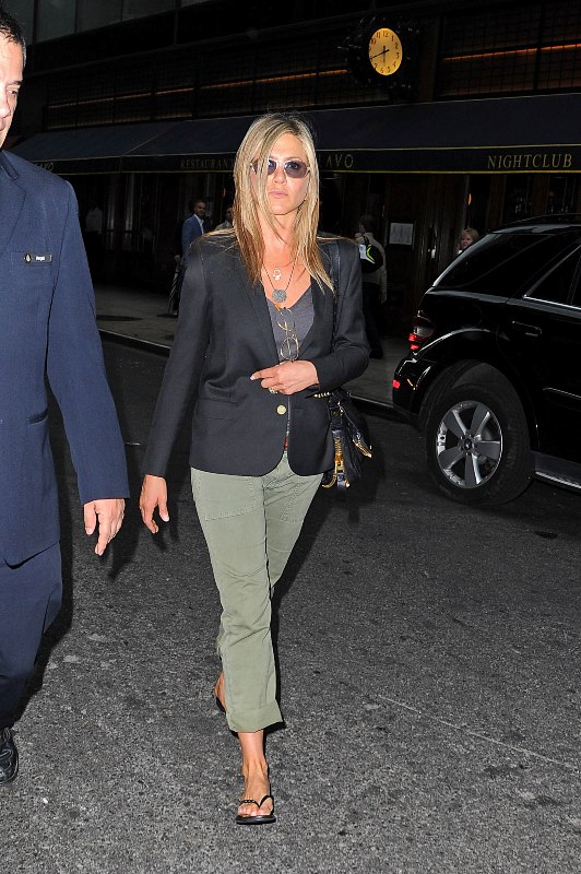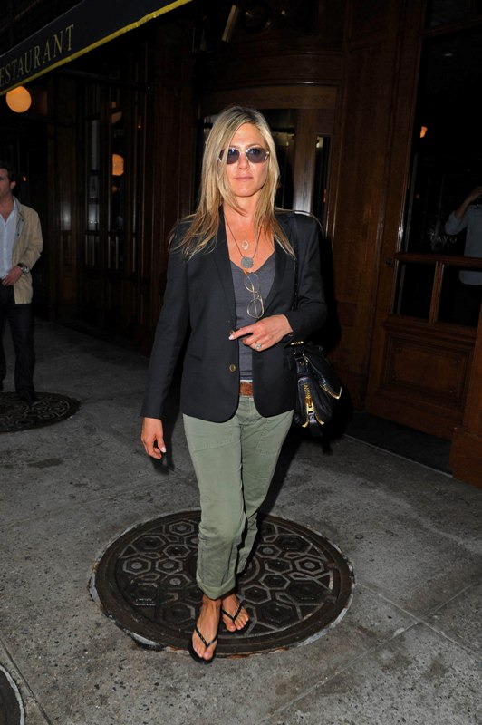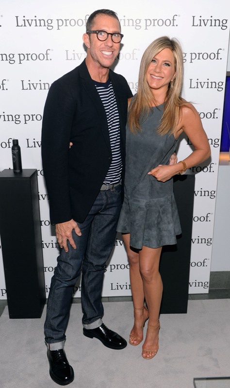 Anyway, here’s Jen with her long-time Hair God Chris McMillan to launch the Living Proof, or Living proof, Web Series. She wore a suede grey dress and her legs are beautifully tanned and toned. Last week Jen wore a black dress that wasn’t super fitted around the stomach -- click here to see the photos -- and since you all are obsessed with Bump Watch, everyone freaked out that maybe she was pregnant. Her publicist immediately issued a statement to Gossip Cop denying it. But... clearly she doesn’t mind the rumours, because this will no doubt set off yet another round of speculation about whether or not she’s expecting. It’s what the MiniVan Majority has been longing for for a long, long time. And she’s engaged too. Can you imagine? A wedding AND a baby? It’d be on every cover of PEOPLE Magazine for 9 months straight.