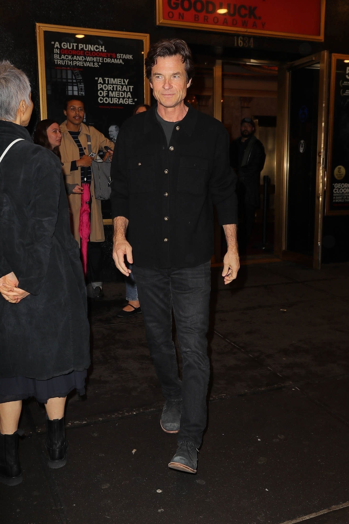 Jennifer Aniston was in New York last night with Jason Bateman and his wife Amanda. They’ve all been close friends for years and they were headed to support another friend, George Clooney, on Broadway in Good Night, and Good Luck.