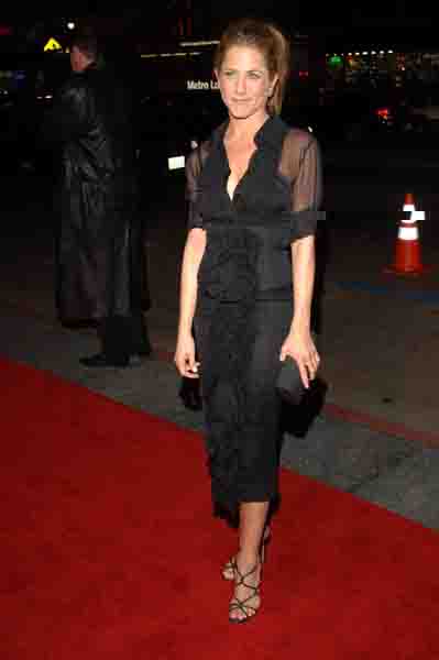 Well doesn’t she??? Here’s Jen at the premiere of Friends With Money. For Sony"s sake, let’s hope the film does well before she ends up blaming the director and the script and everyone else but herself. Sorry, I digress. Back to the compliments. I like the ponytail. I like that she’s trying something different. Because even though it’s black and boring, even though the shoes seem budget, even though the shape of her face is odd at best, and even though there is something rather “hairnet” about her forehead, this is a great example of doing the best with what you’ve got. It’s wonderful when ordinary gets enhanced. And for that, she deserves our praise.