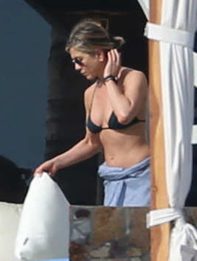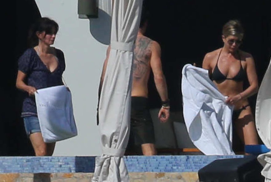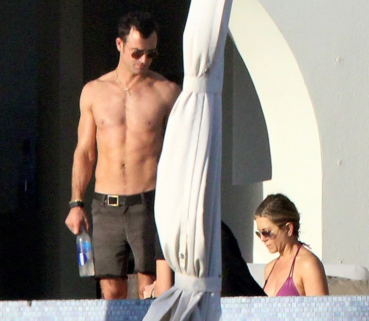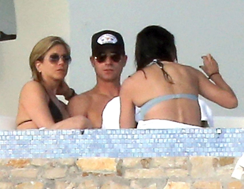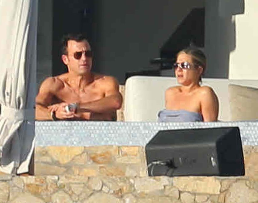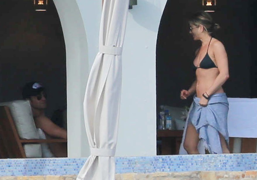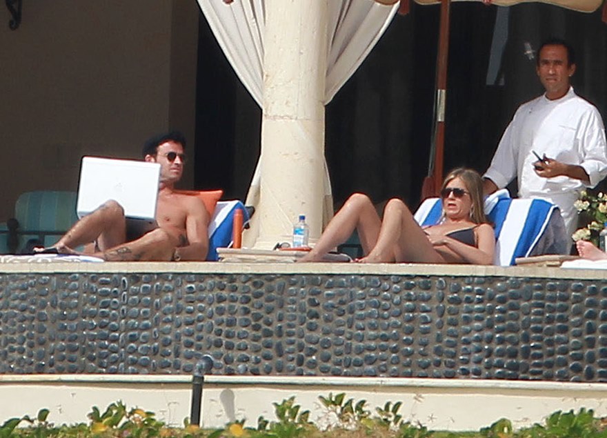 It’s an annual tradition: Jennifer Aniston and her friends hop a private jet to Cabo where they welcome the new year in bikinis. Actually, everyone else is in traditional swimwear but Justin Theroux prefers black cut-off jeans.
