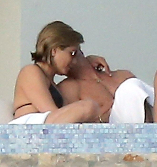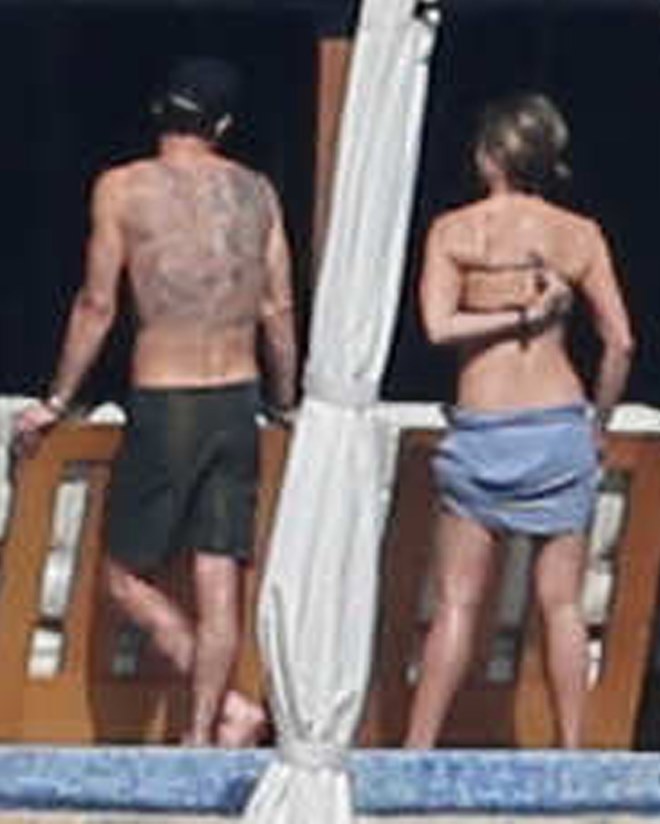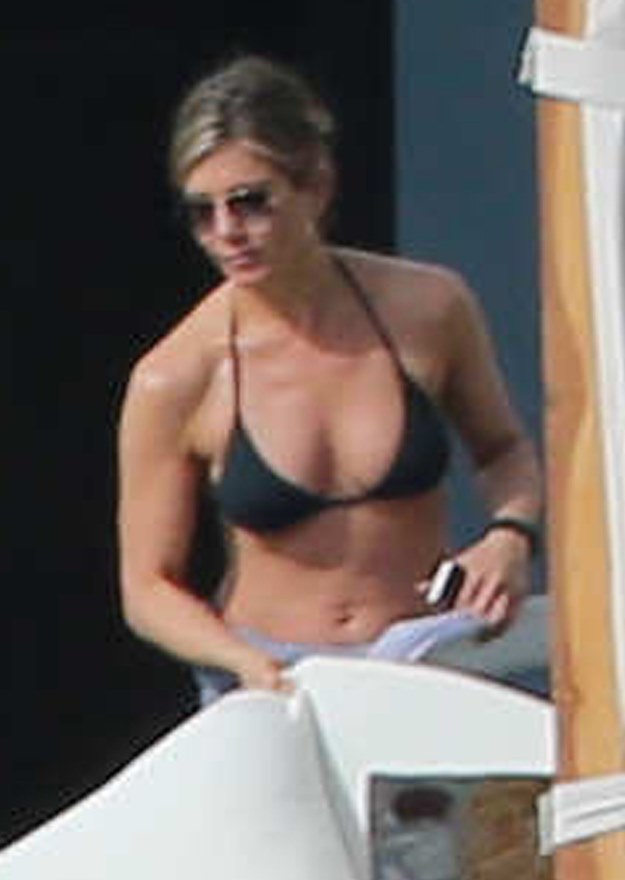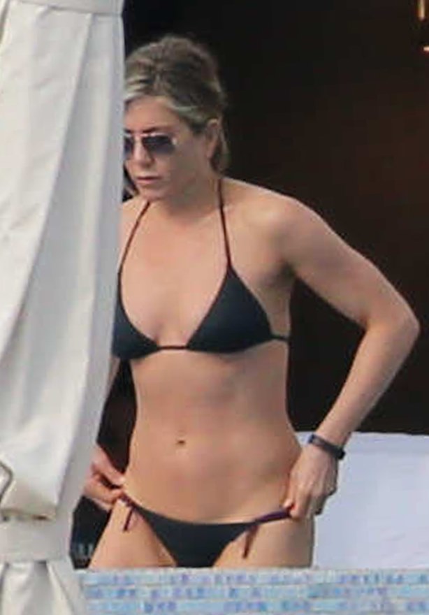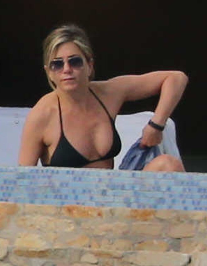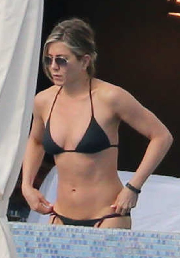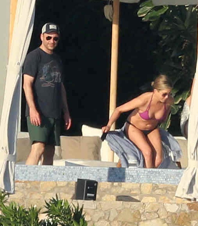 It’s an annual tradition: Jennifer Aniston and her friends hop a private jet to Cabo where they welcome the new year in bikinis. Actually, everyone else is in traditional swimwear but Justin Theroux prefers black cut-off jeans.
