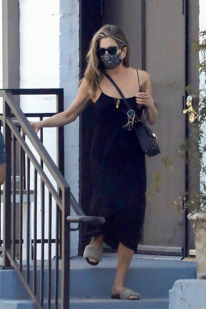 As for Brad Pitt, I know this isn’t the big story about Brad Pitt today in particular, but I’m still waiting for more information on that situation so let’s get into it tomorrow. For now, here are some new photos of Jennifer Aniston this week leaving a salon in LA. What stood out to me is the double shades – she’s got a pair on her face and another pair of aviators hooked onto the strap of her bag. Do any of you out there go out with more than one pair of shades? Is it one for prescription and driving and another for the look? In general, what’s the average number of sunglasses that people own? I have four or five pairs of cheap ones, that came from freebie bags that I’ve collected over time, that I use when I’m just messing around outside, or reading on the deck. Then I have two designer pairs that I suppose are considered the “fashion” shades, but it’s been at least two years since I’ve taken either of them out for a spin because I love my regular, everyday shades so much but they’re not fancy, I just can’t get enough of them and live in fear that I’ll lose them. They’re Le Specs, pretty affordable, and now I’m wondering if I should order a backup pair.
