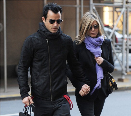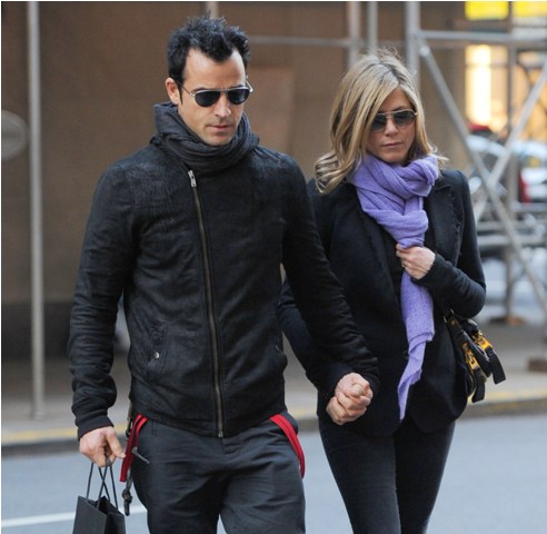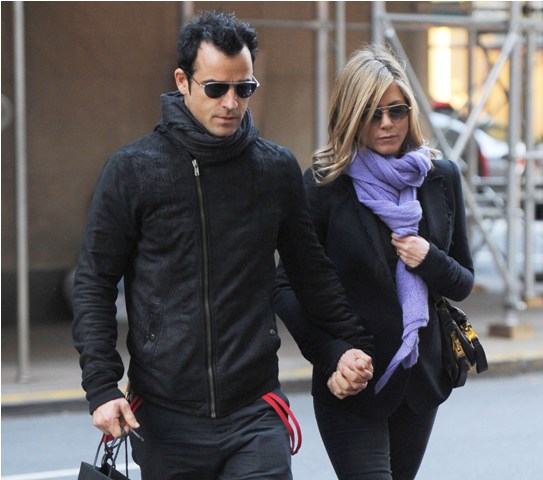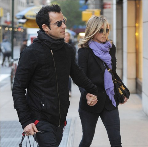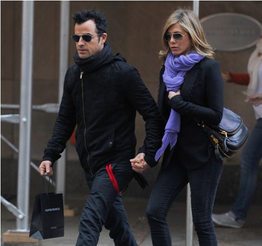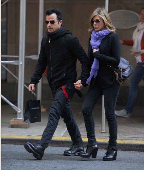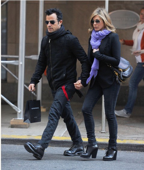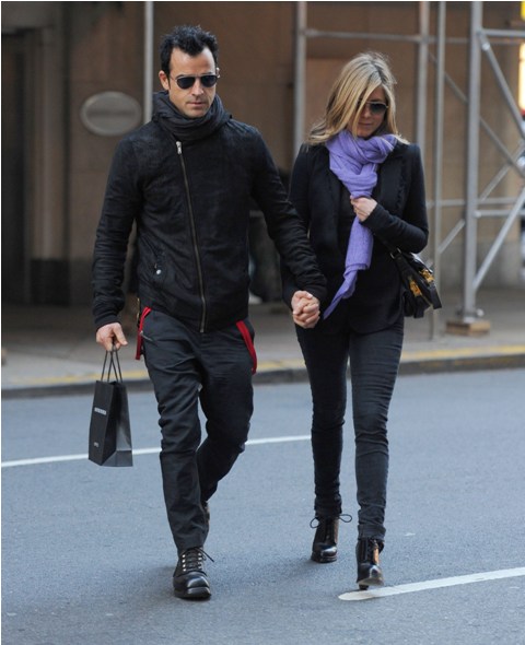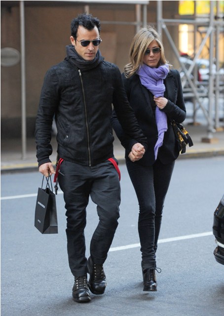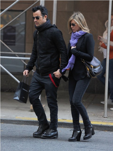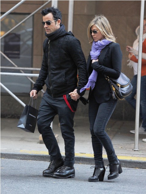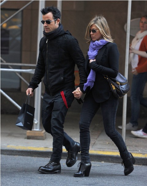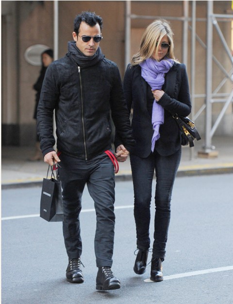 Here’s Jen in New York with her constant Justin Theroux shopping for furniture, or something. Does he have to arch his eyebrows all the time???