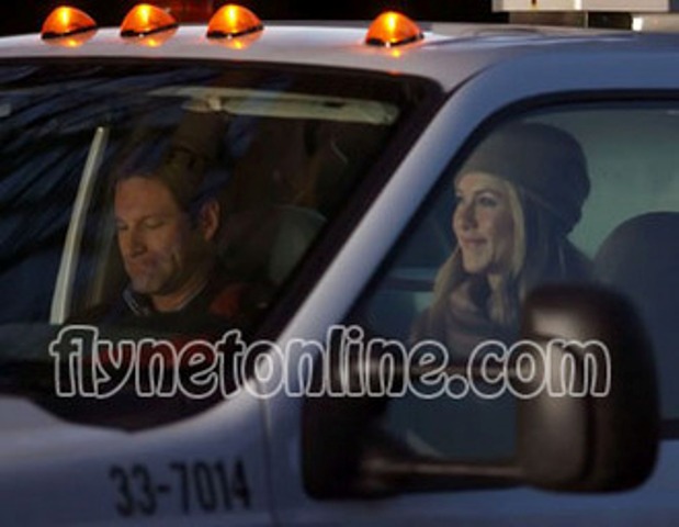 Aniston and Aaron Eckhart were shooting Travelling in a residential neighbourhood in Vancouver yesterday - on set she was in a fine mood. Waving for fans who’d come out onto the street to gawk, signing autographs, dazzling everyone with her smile…but insisting on no photos.