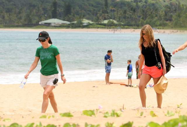 So in advance of the two new projects she’s just lined up, Jennifer joined BFF Courteney Cox and her family in Hawaii for a little downtime this weekend.