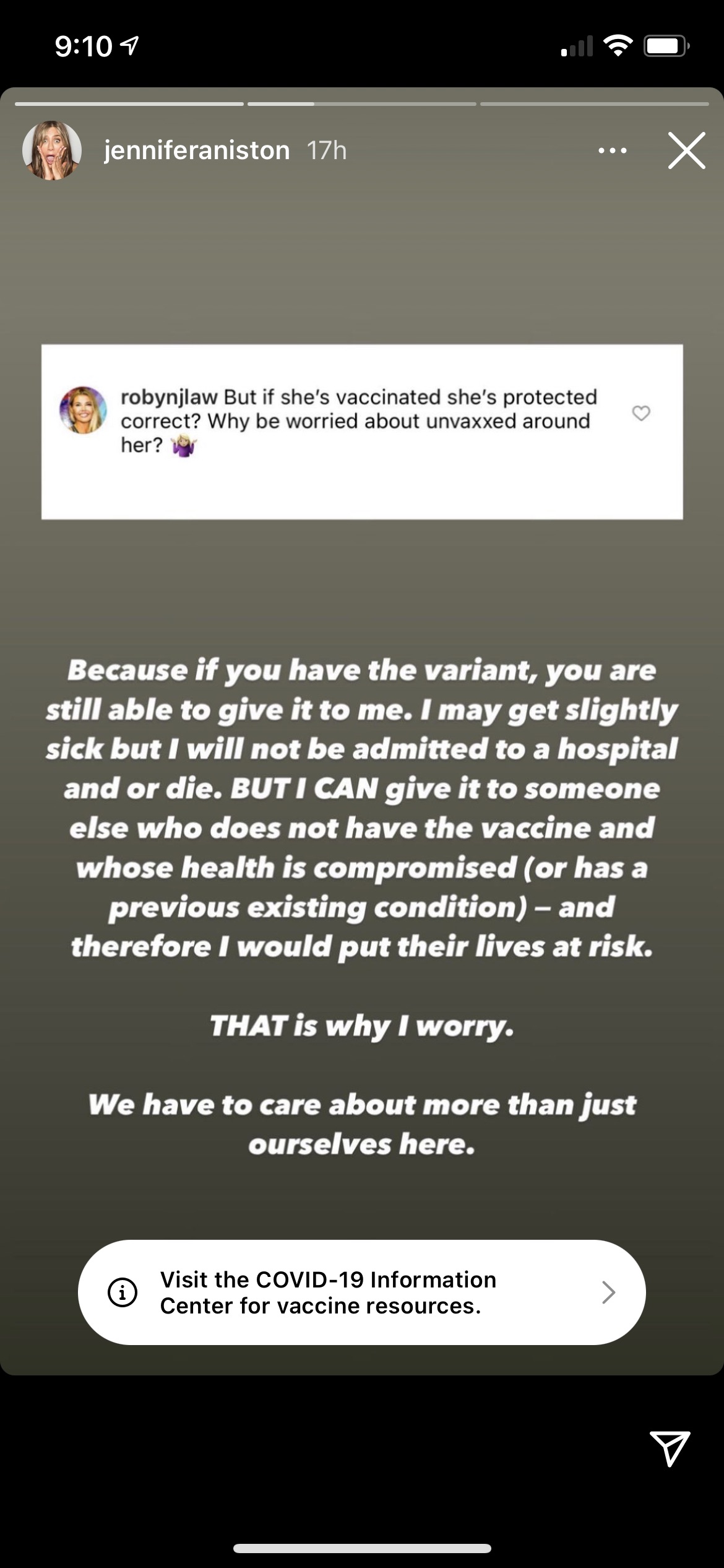 That’s Jennifer Aniston taking it to her ratio and calling some of her followers selfish. And at a time when she’s supposed to be promoting the second season of The Morning Show on Apple and also a side of the Friends reunion special which is still a big draw for HBO Max. This is how she’s using her capital.