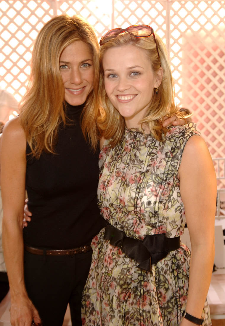 Jen and Reese have known each other a long time. They hang out in the same LA circles. And of course Reese played Rachel’s sister on Friends. That was back in 2000. It was after Election and Cruel Intentions but before Legally Blonde, the movie that made Reese Witherspoon a very big deal and a bonafide movie star. They are equally famous. But professionally, you could say that Reese surged ahead. And for those of you who might say that these kinds of observations pit women against one another, we here at LaineyGossip are in favour of fair female competition.