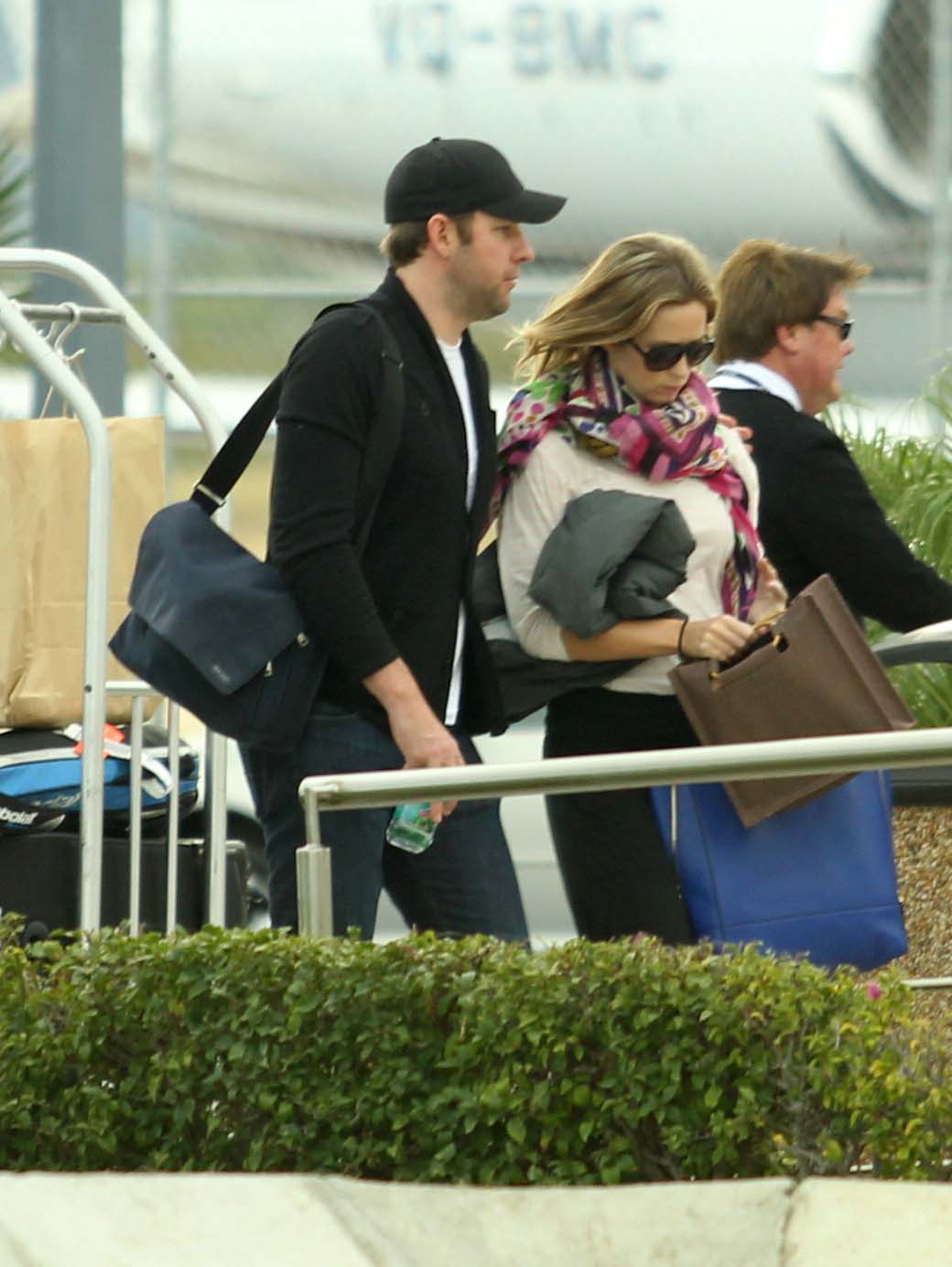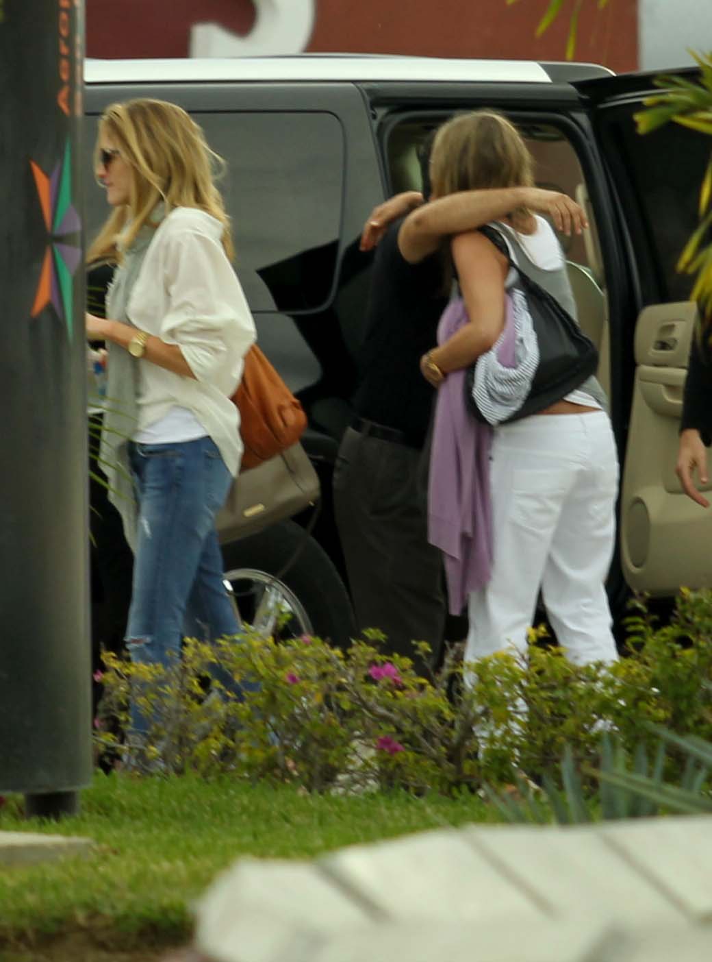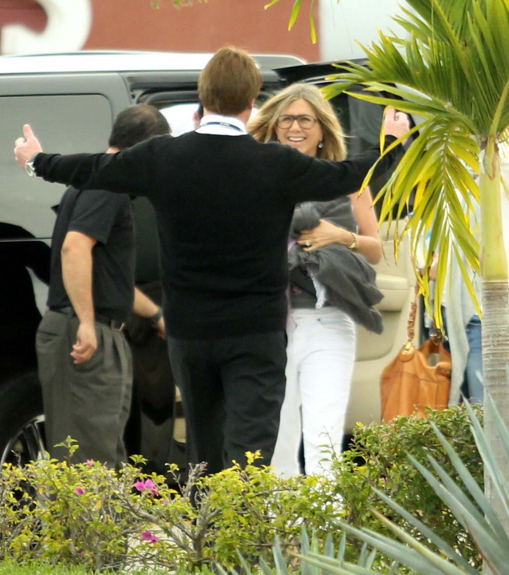 As you know, Jen and Justin Theroux have been on holiday in Cabo with Emily Blunt, John Krasinski, and Jimmy Kimmel. They left yesterday back to LA. I like her whites. As for Emily -- she's up for a Golden Globe next Sunday. She likely won't win, but it adds to what will be a very, very stacked carpet.