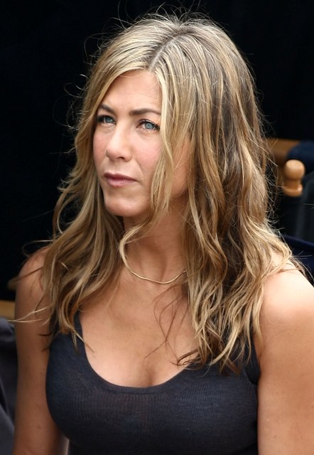 An unflattering photo of Jennifer Aniston taken today on the set of Bounty in Atlantic City. Not only is there no glow, she also looks grey, ashy, doughy, pinched, and above all old.