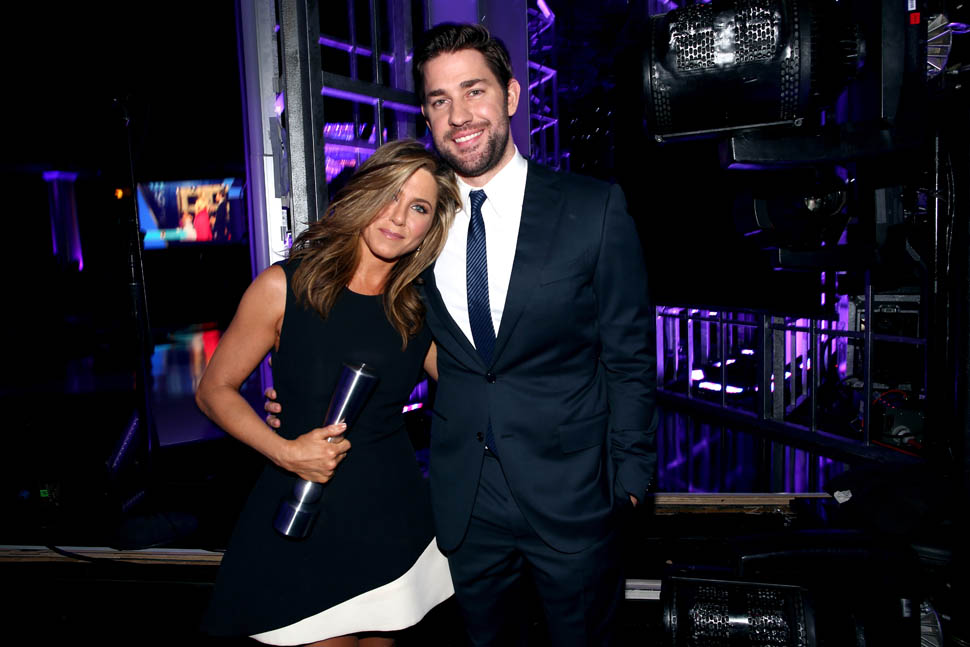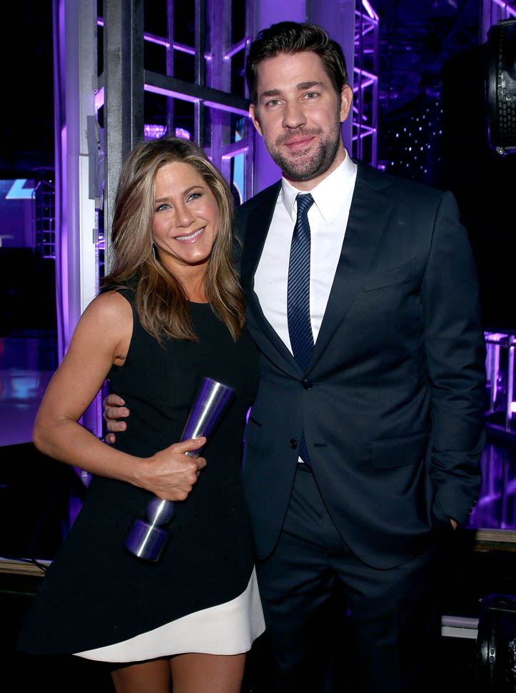 John Krasinski presented to Jen. And she was there with her power publicist Stephen Huvane. But she was also on yesterday’s episode of Dr Oz, talking about chronic pain and exercise etc.