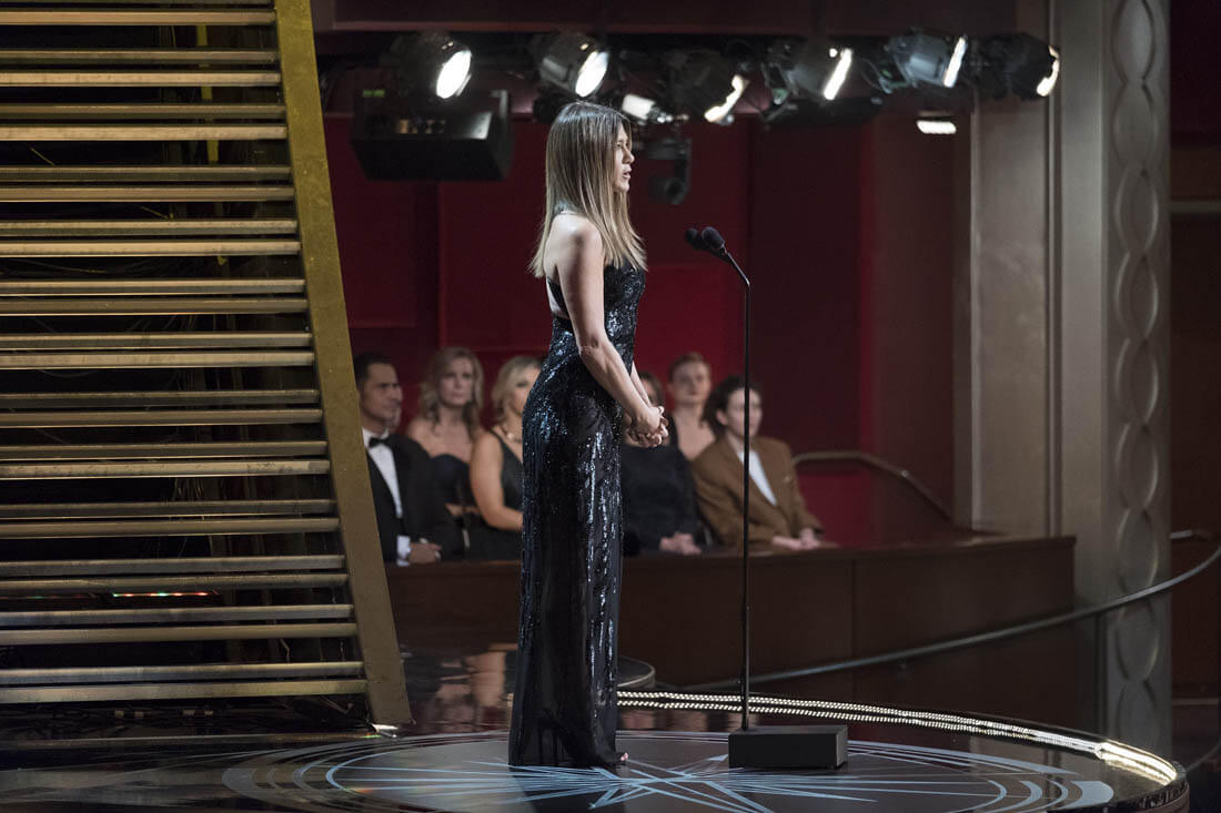 I always find her a bit nervous when she presents, and this year was no different: it had to be difficult to mention a recent passing that didn’t make the montage (this year) and her throat clearing seemed unintentional, her emotion appropriate for what she was up there to do.
