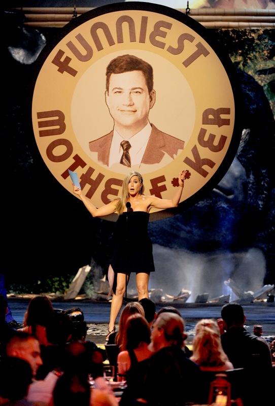 While on stage, Jen dropped a few jokes at Jimmy’s expense: