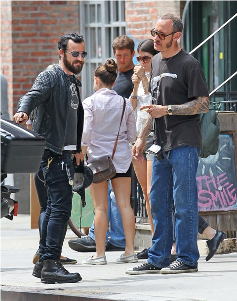 Here’s Justin with Richardson yesterday in New York. Richardson, by the way, isn’t exactly in line with Jennifer Aniston’s usual beach, margaritas, and French manicures crowd. Like, she’s not talking about pilates with him. Or shouting at the ocean to find peace. Rather, it may be a discussion about whether or not she should pose for him while removing her tampon. What? Click here. That’s Terry.