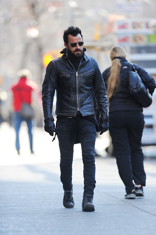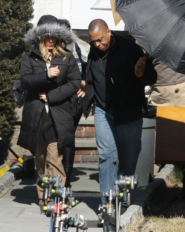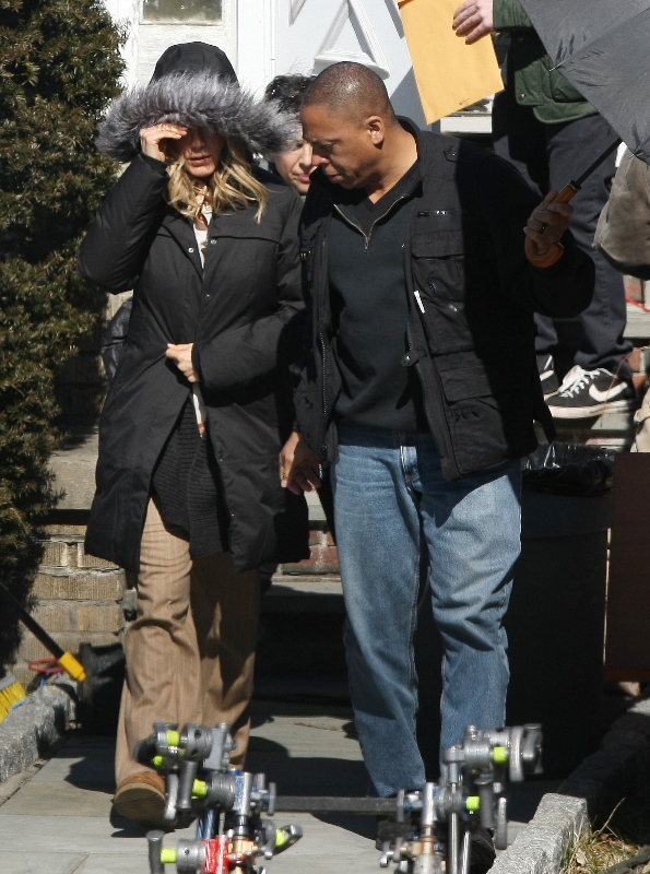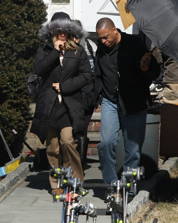 Attached -- Jen on set the other day while Justin walks around NYC.