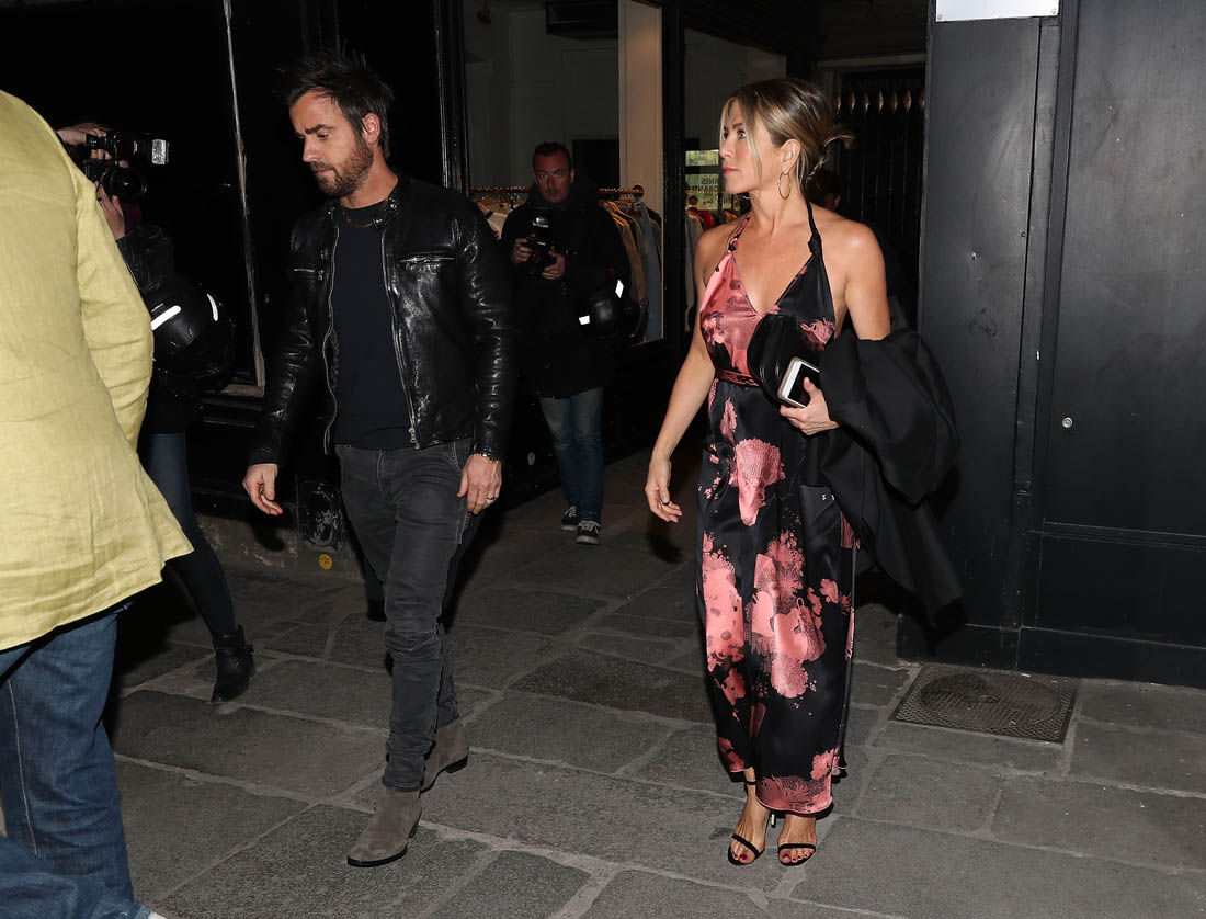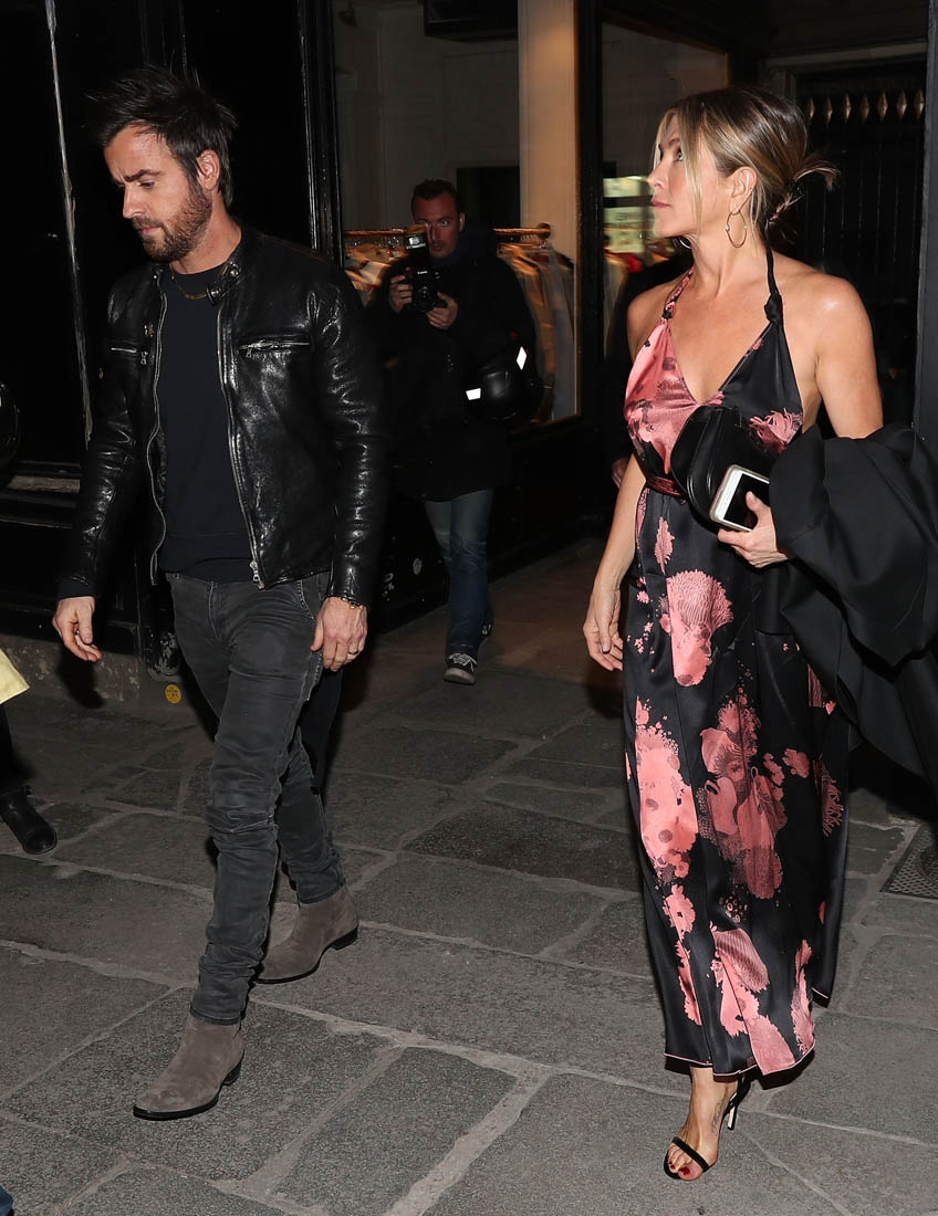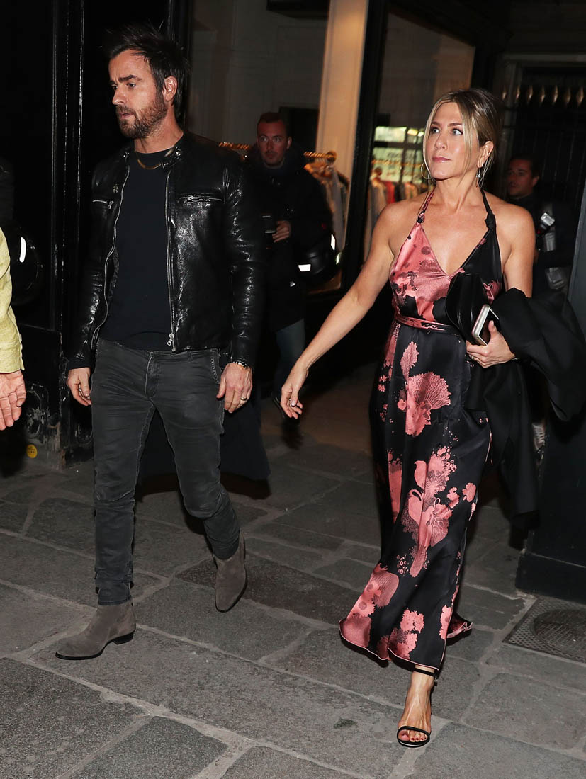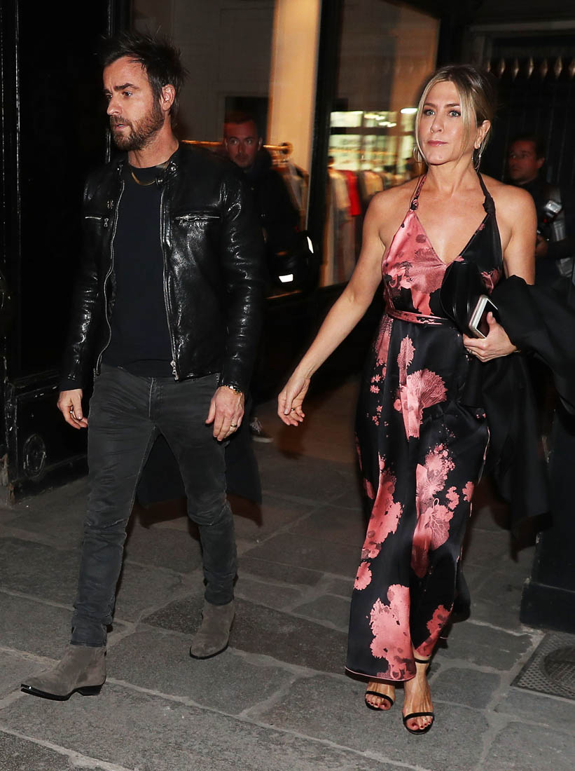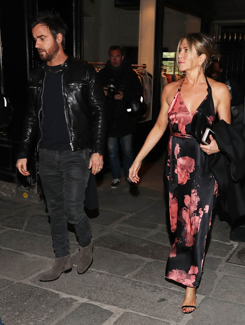 Jennifer Aniston and Justin Theroux went out for dinner in Paris last night. Can I just say I’m still mad about the pants she wore to the Louis Vuitton event this week at the Louvre?