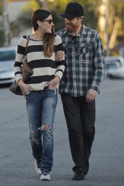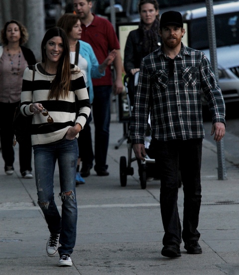 That night, they were apparently holding hands and kissing the entire time. And now it appears they’re ready to publicly confirm it - after cancer, divorce, and Julia Stiles, Jennifer Carpenter and Michael C Hall are back together. Unmistakeably so. Here they are in Santa Monica yesterday. Photo Assumption says they’re incapable of containing their happiness.