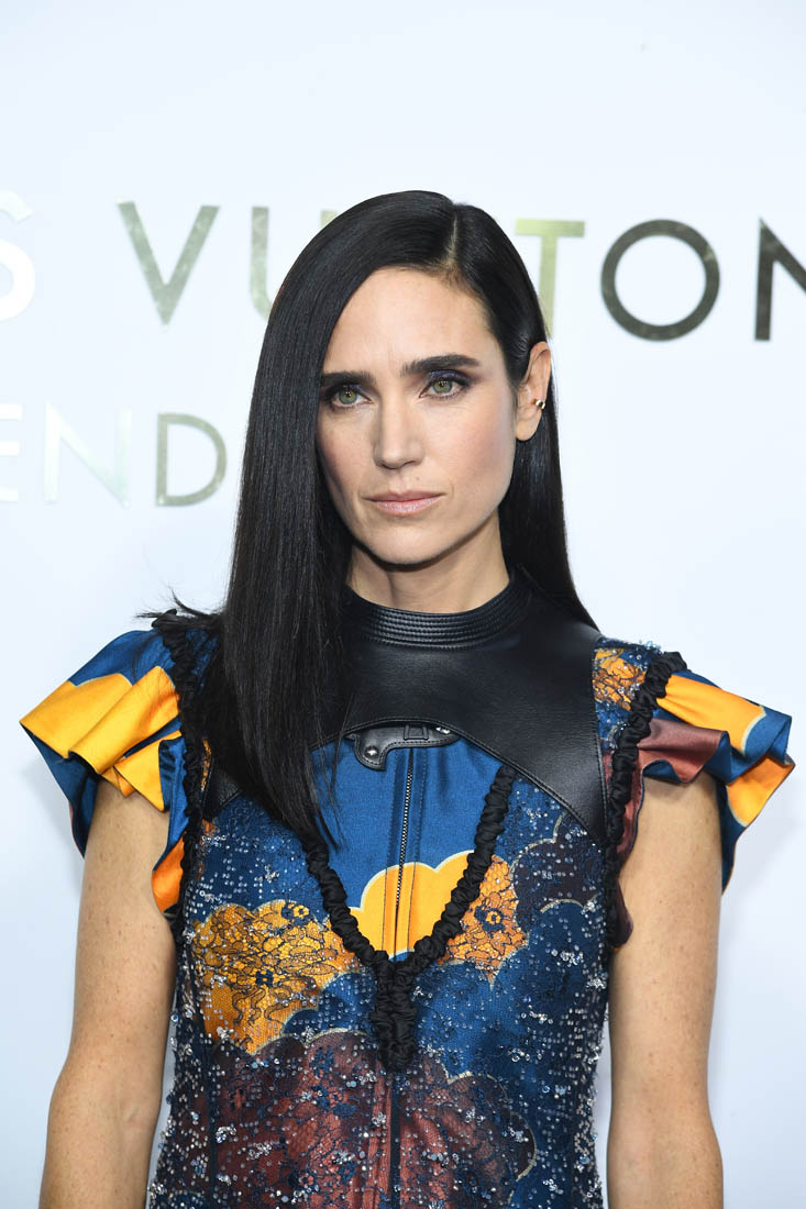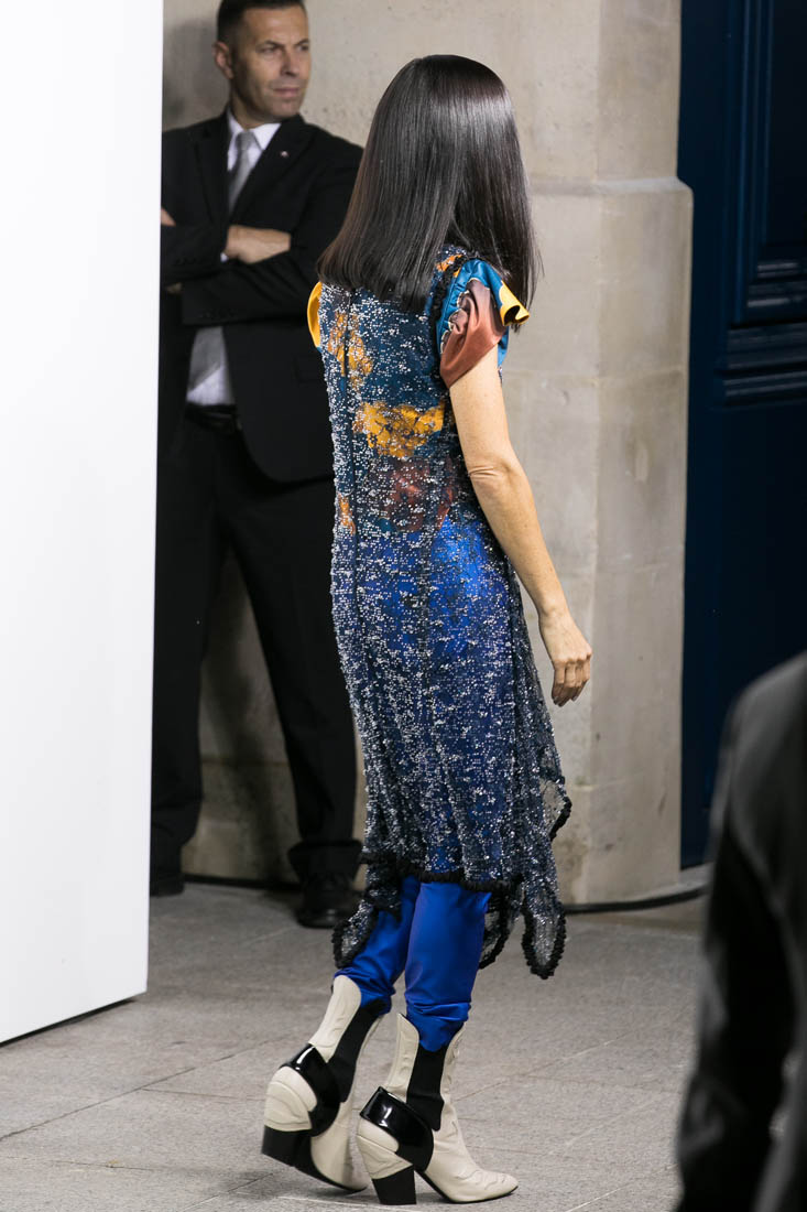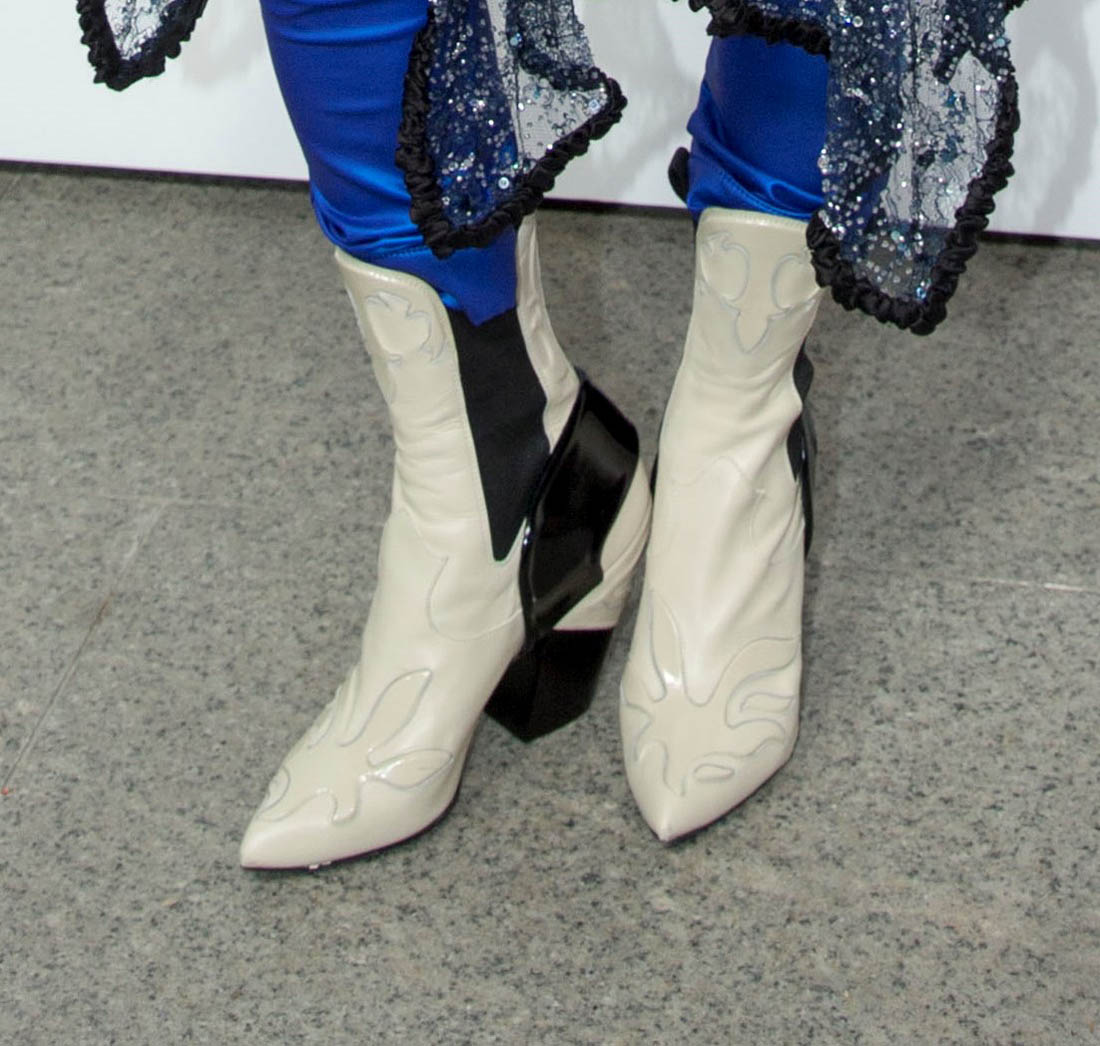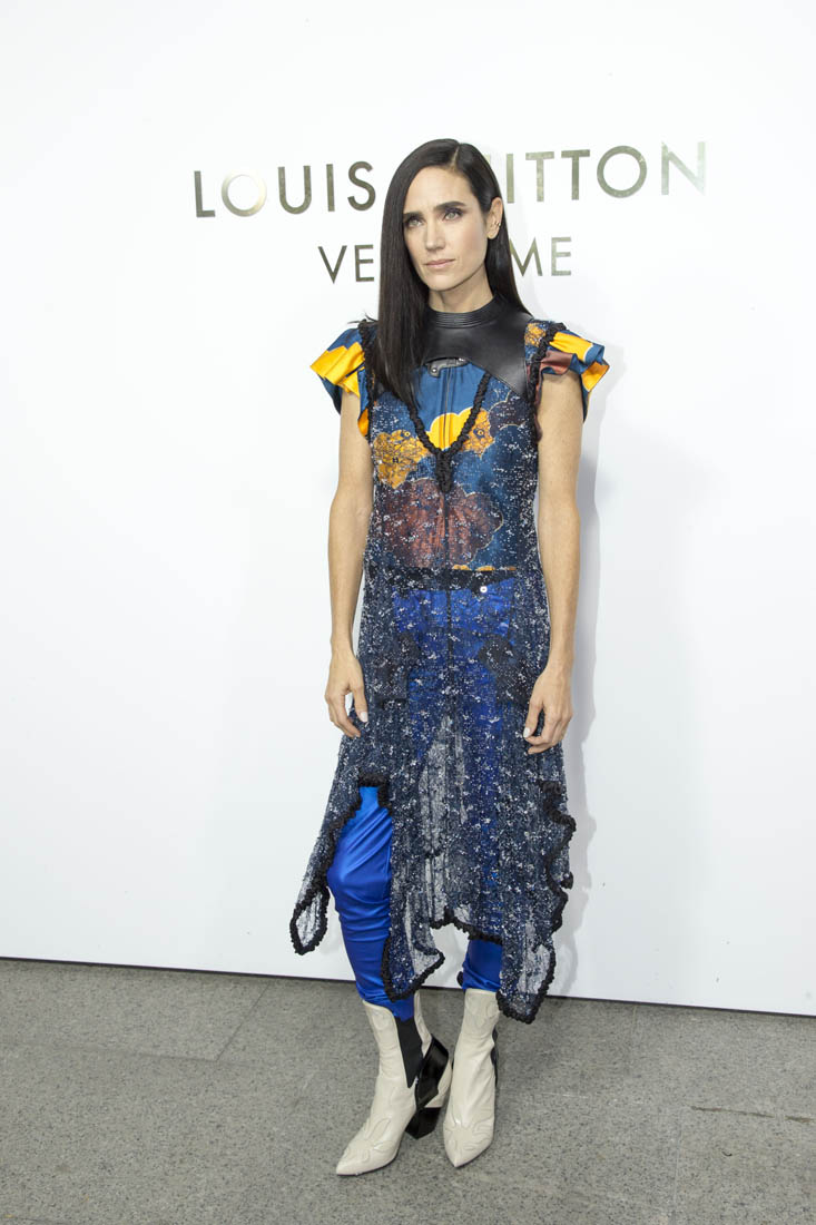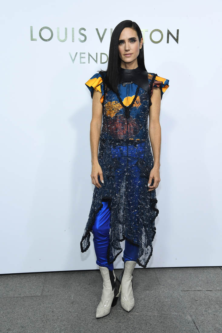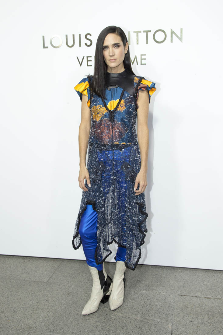 Here they both are in Paris for Louis Vuitton yesterday. Jennifer, of course, is an LV favourite. Because she’s a favourite of Nicolas Ghesquiere, from back when he was at Balenciaga. He loves her because she can wear the sh-t out of his clothes. Like this outfit. And outfit that could have been too busy, what with the sheer piece on top and the leather plate below the neck, on top of a zipped ruffle-sleeved jacket that might actually turn into a jumpsuit with electric blue pants. And white boots with a hint of cowboy.