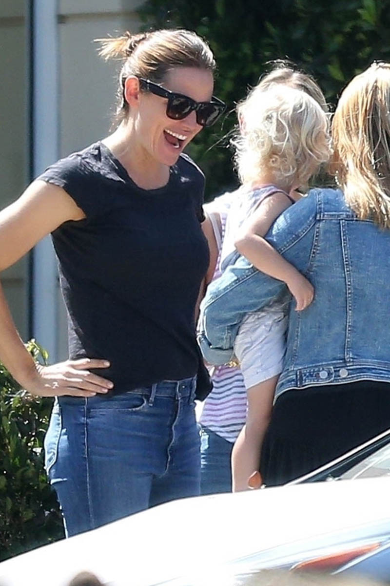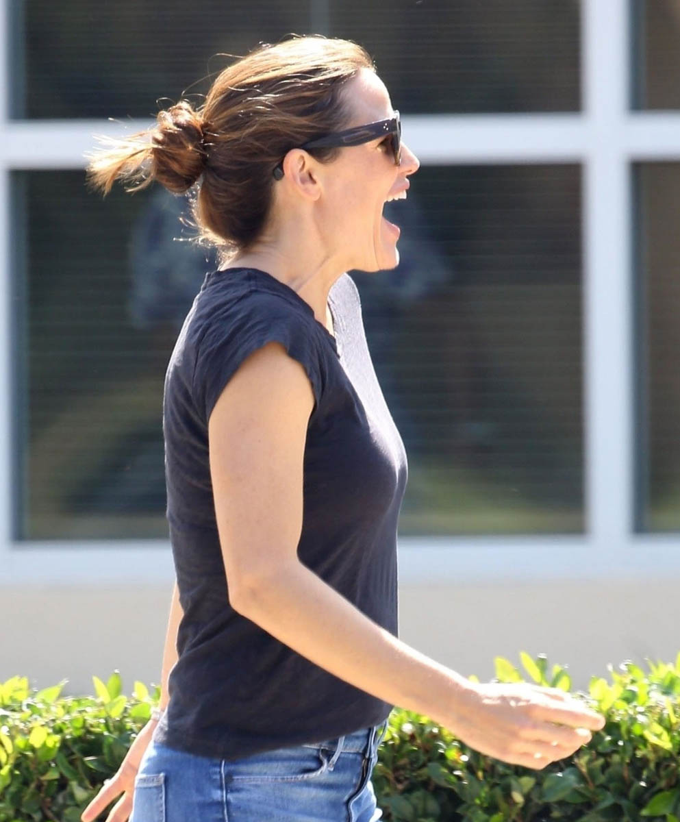 Here’s Jennifer Garner yesterday, a day after taking Ben Affleck to rehab, looking pretty relaxed running errands in the neighbourhood. There must be some relief there, non? He’s in a safe place. He’s getting help.