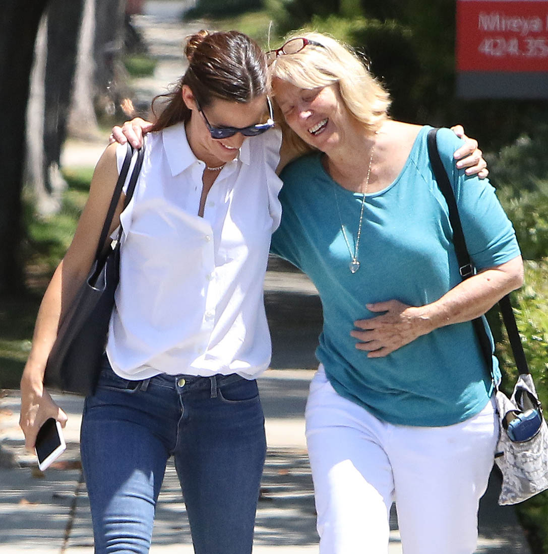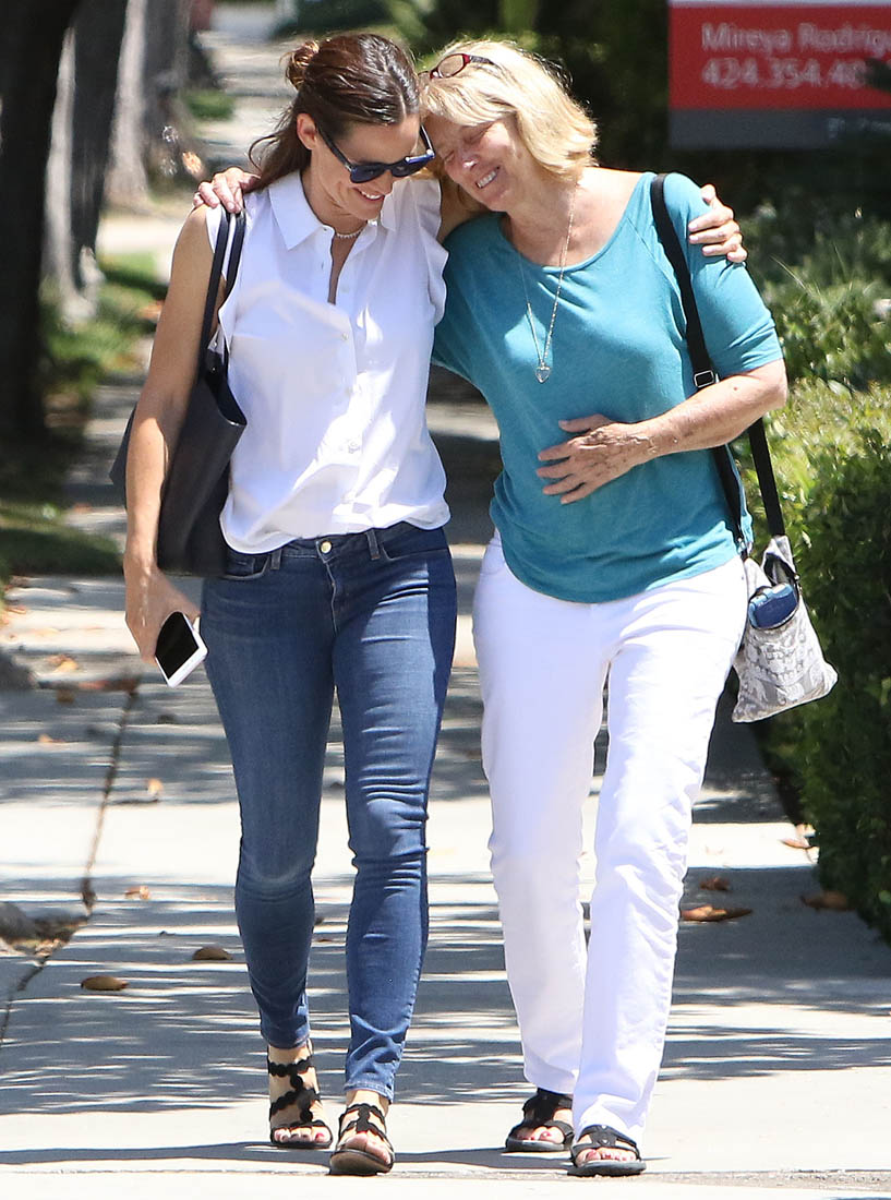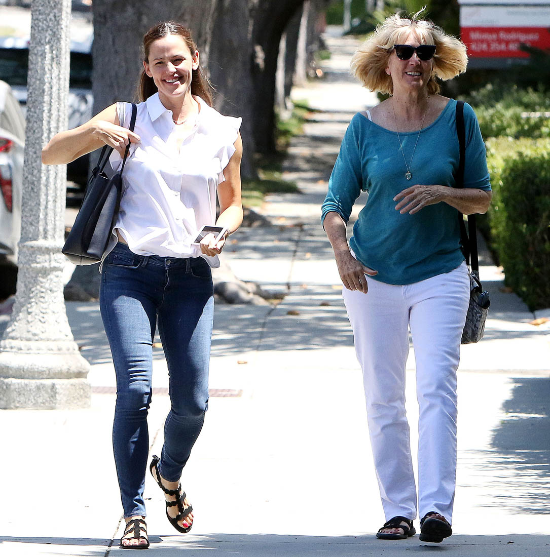 While that was happening… Jennifer Garner? Well, Jennifer Garner was hanging out with his mom. It was a beautiful, sunny California day. Like most California days. And look, Jen and Chris are happily walking down the block, enjoying the weather but mostly the company. Jen takes her sunglasses off and hands them to her former mother-in-law, the grandmother of her children. They share a laugh. They put their arms around each other. They lean their heads into one another. They smile. Oh and the paps are there, totally by accident, of course, to give us an update on America’s Sweetheart, America’s Favourite Mom, who spent a decade with a f-ckup, who’s so loveable that even his mom can’t quit her. Which brings us, naturally, to the next question: how could he quit her?