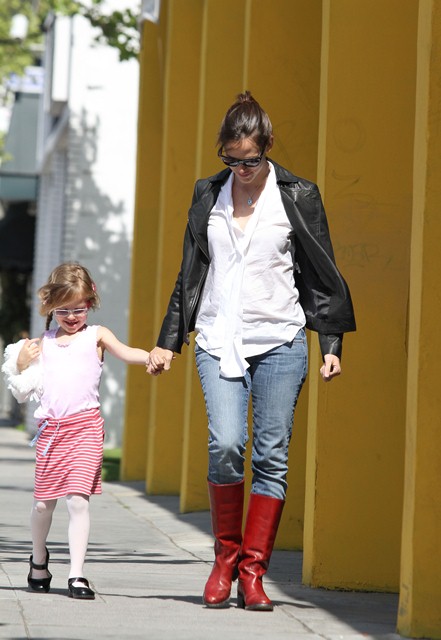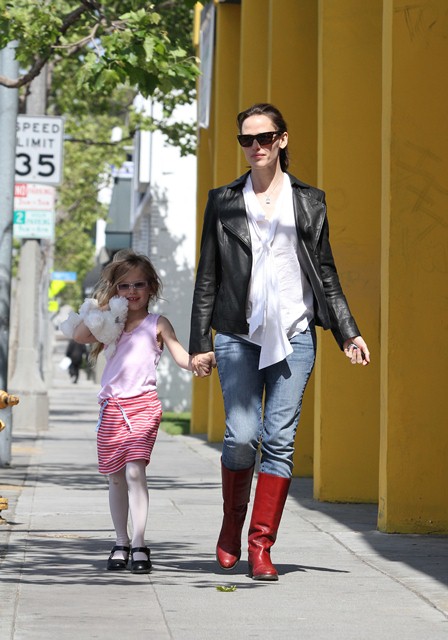 Yesterday she took Violet to dance class and it seemed like she might have thought about what she put on…but ended up sucking anyway? I can’t even talk about these boots and the way she’s wearing them. Like, I actually don’t understand how this happens. Where she finds it. And when she finds it, how it is that she ends up putting it together the way she does. How can someone screw up jeans and a t-shirt? It’s just so f-cking weird.